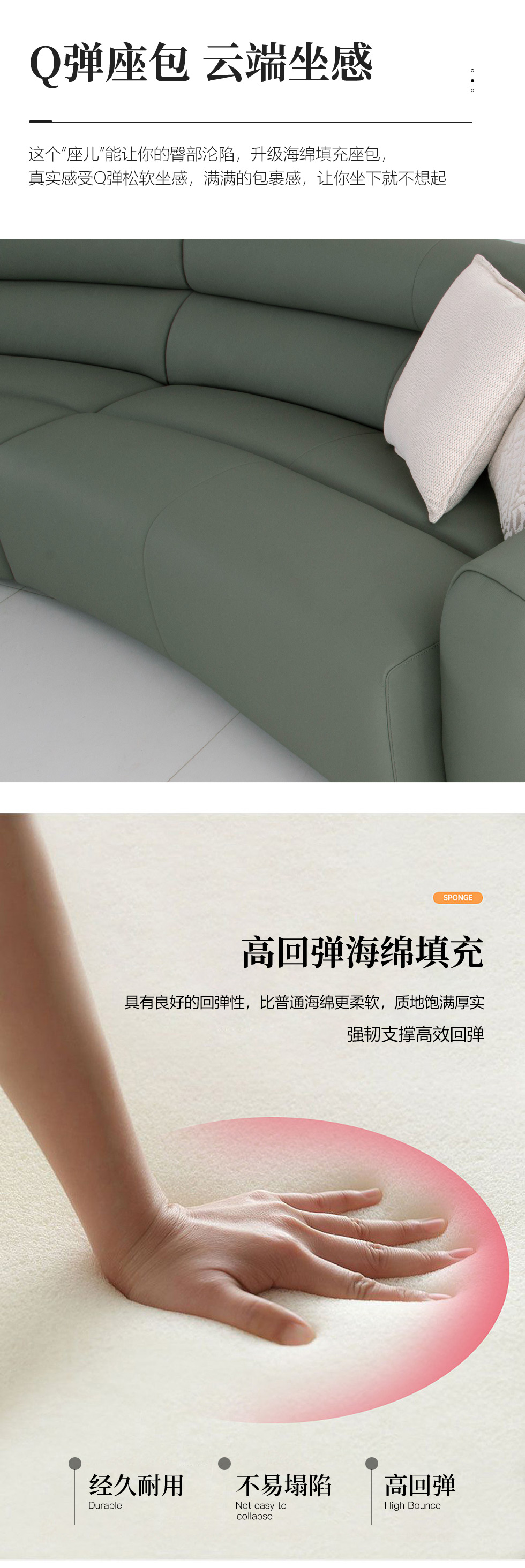 缔造 极简 接触面进口意大利头层真皮+羽丝棉+高密度海棉+碳素钢脚+北美白蜡木(做碳灰木色)真皮转角3.4米沙发 (扶手边 左1+无1+右贵)¥15744