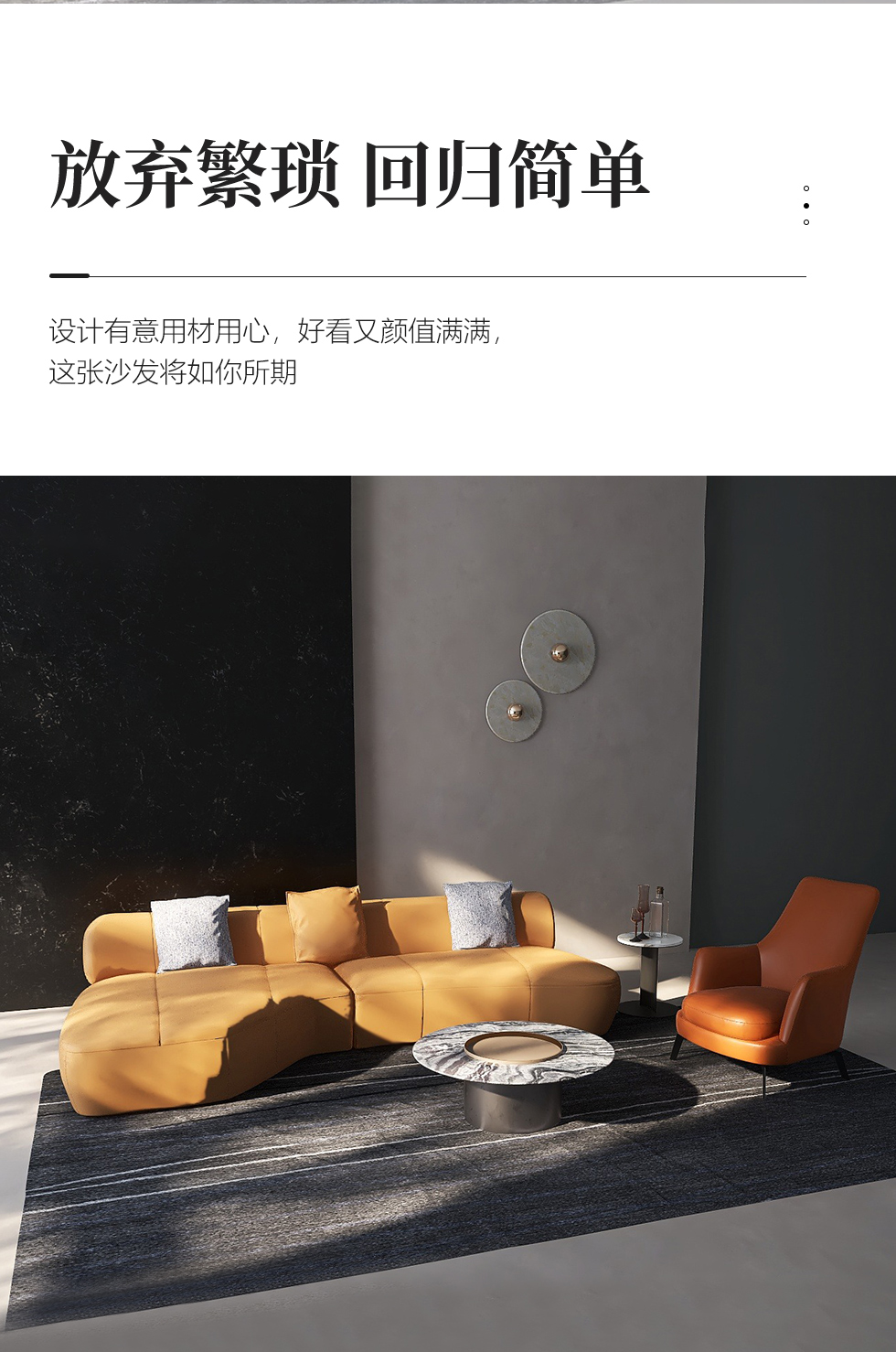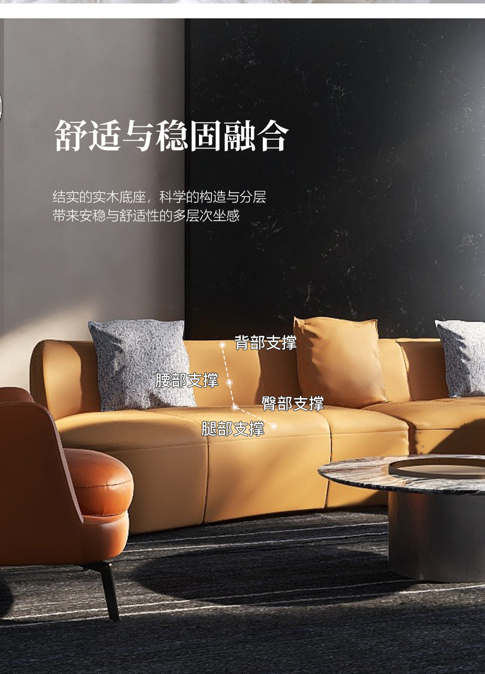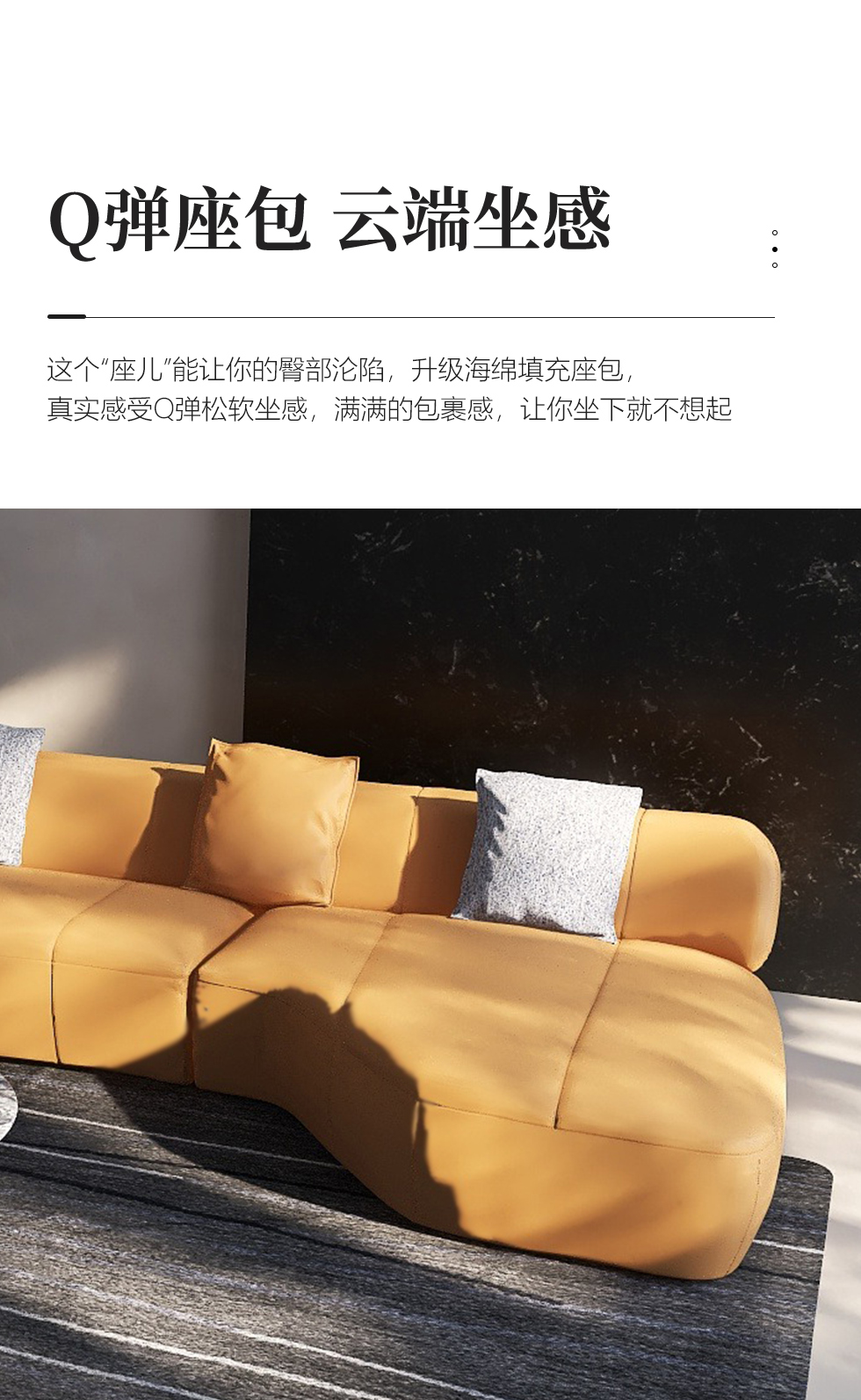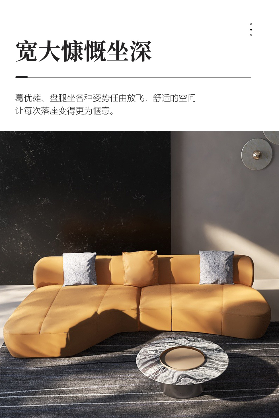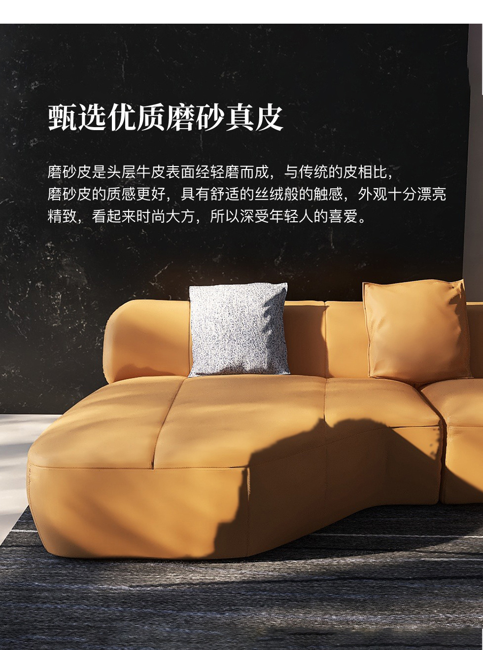 缔造 极简 接触面进口意大利头层真皮+羽丝棉+高密度海棉+碳素钢脚 皮艺组合弧形3.66米沙发(左3+右3)¥21625