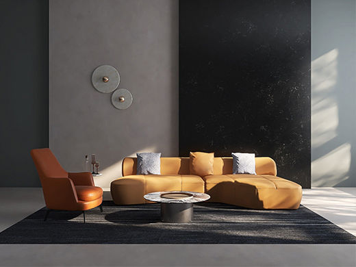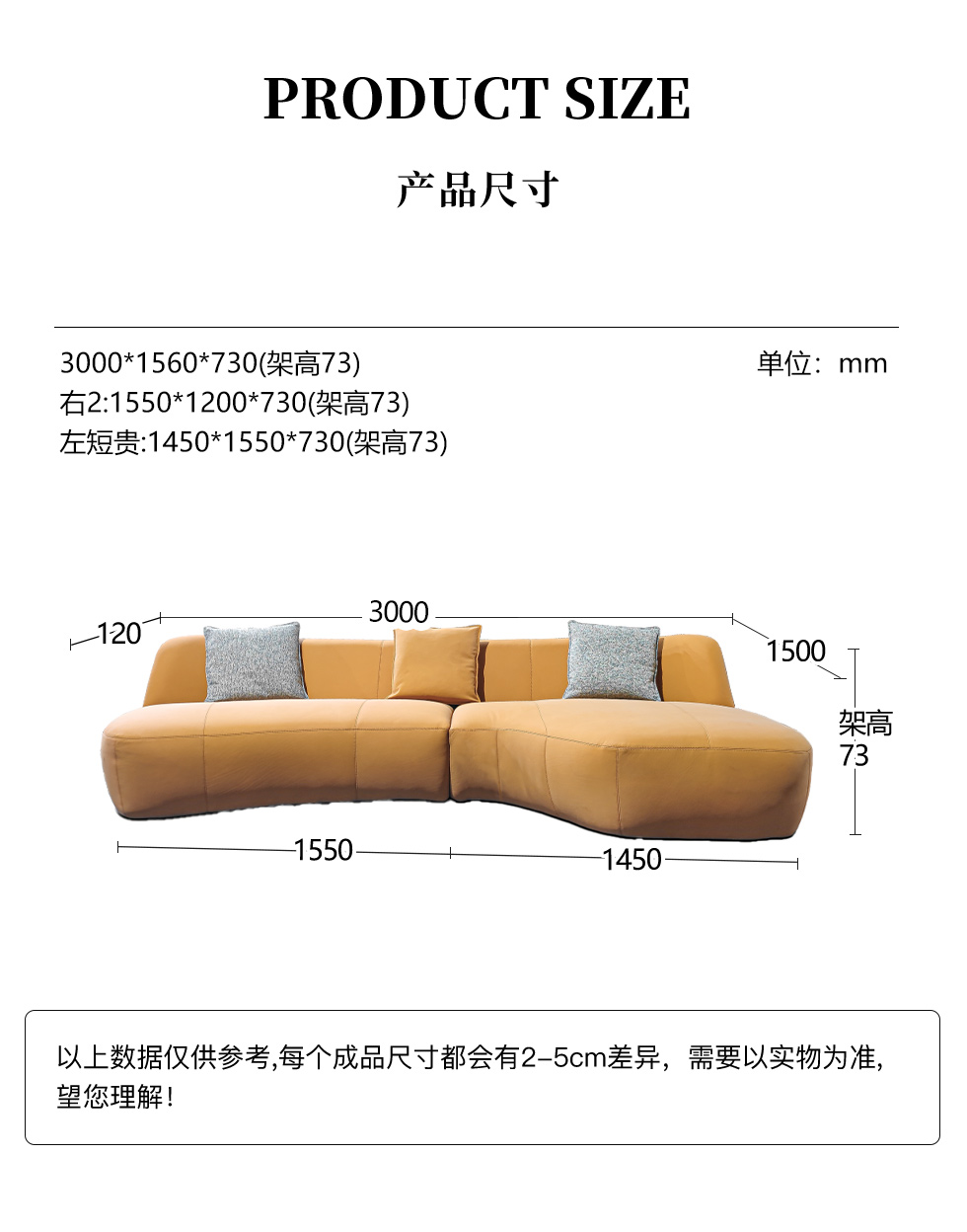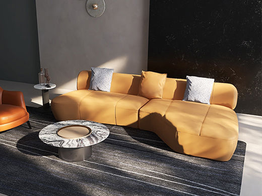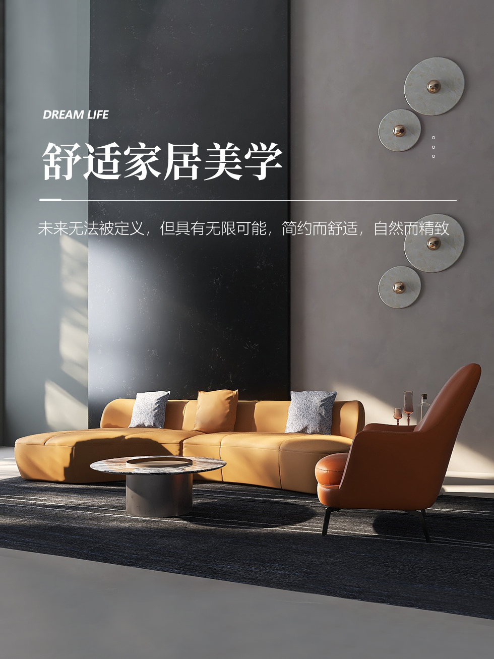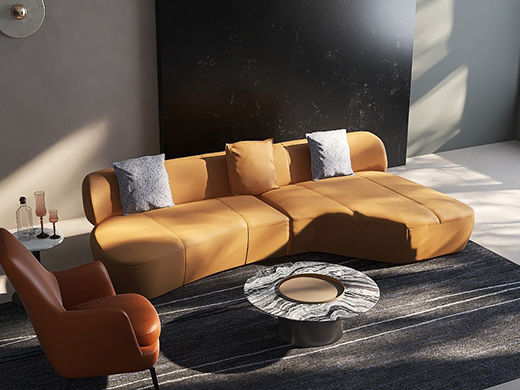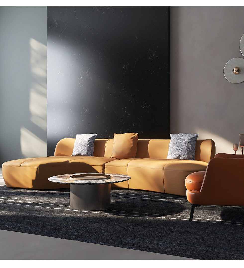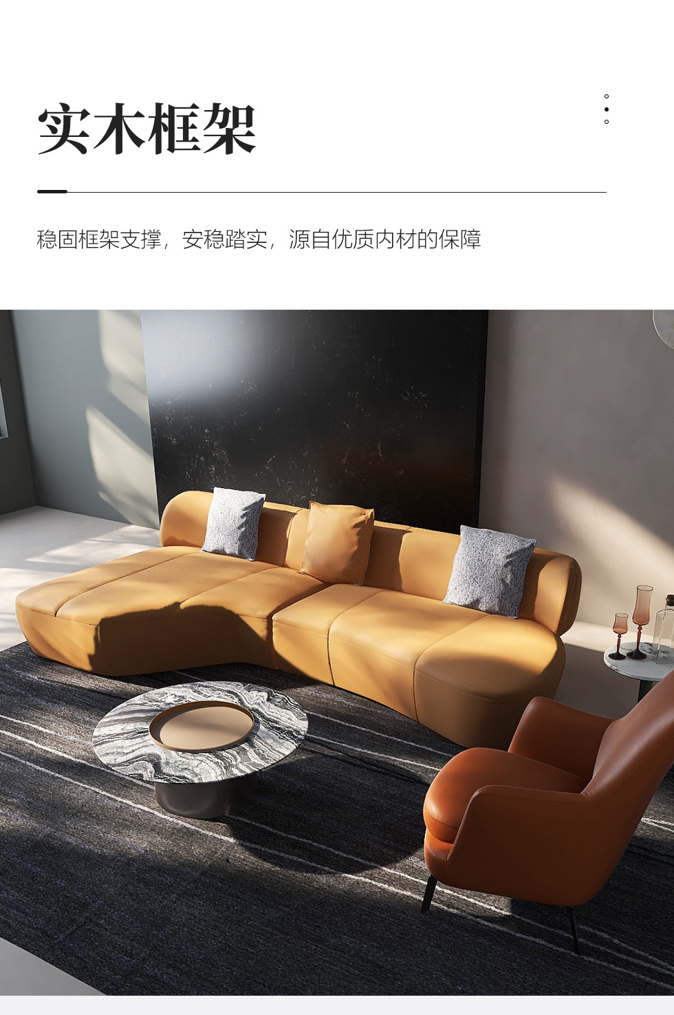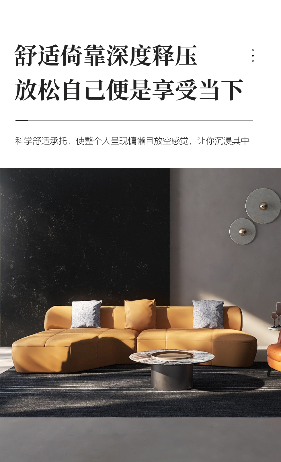 缔造 极简 接触面进口意大利头层真皮+羽丝棉+高密度海棉+碳素钢脚 皮艺组合弧形3.66米沙发(左3+右3)¥21625