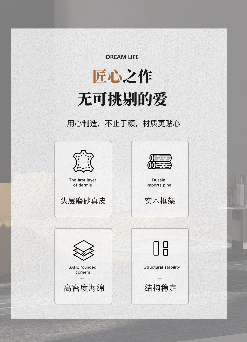缔造 极简 接触面进口意大利头层真皮+羽丝棉+高密度海棉+碳素钢脚+北美白蜡木(做碳灰木色)真皮沙发 两人位2.4米沙发¥13877