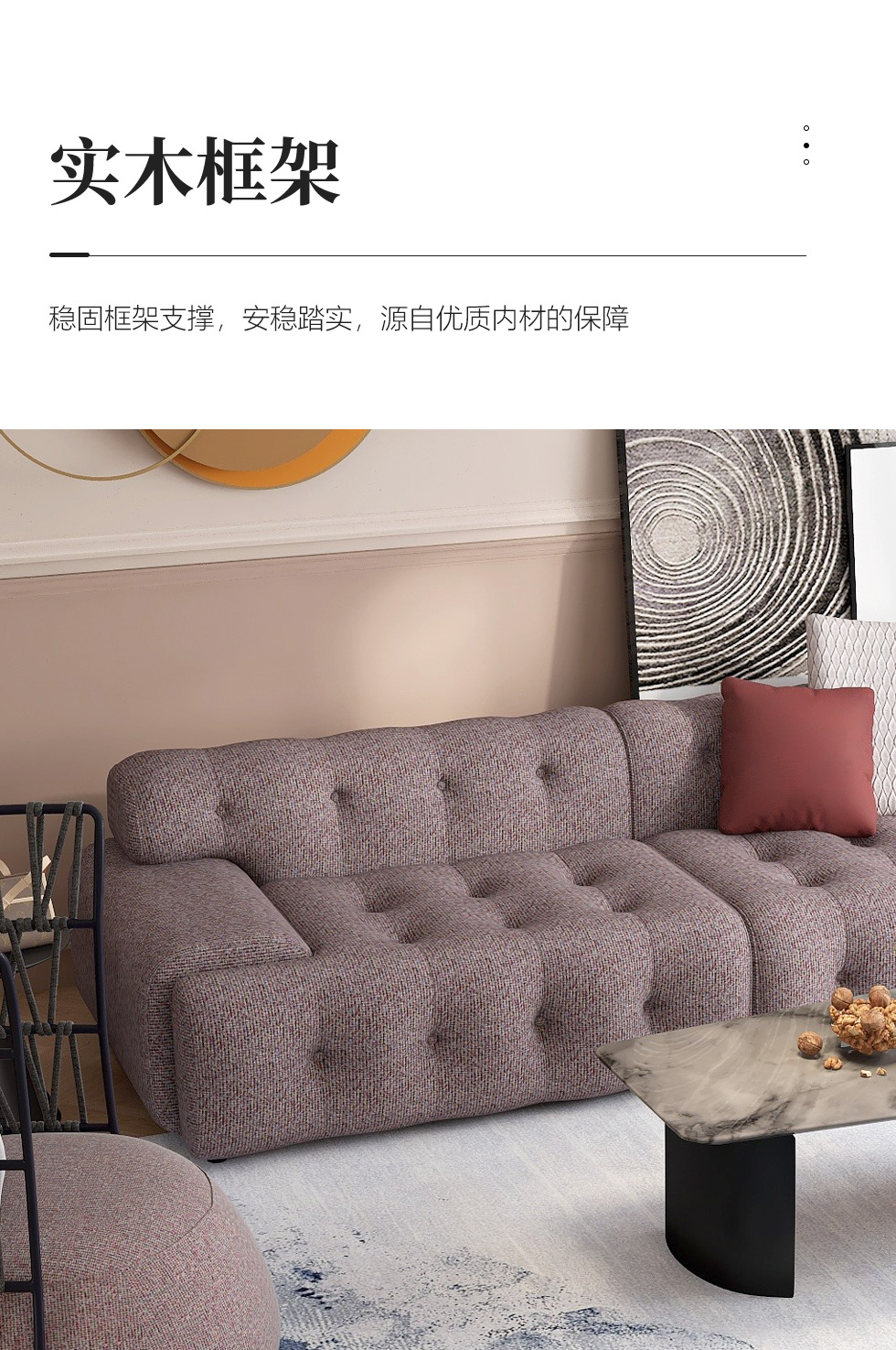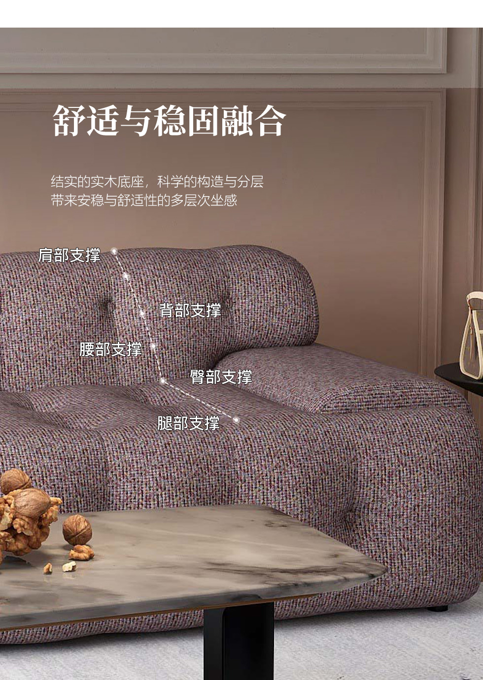 缔造 极简 优质棉麻布+羽绒+高密度海棉+碳素钢脚+北美白蜡木(做碳灰木色)边框+铁片包马铵硬皮 布艺转角3.19米沙发 (右3+左贵)¥13877