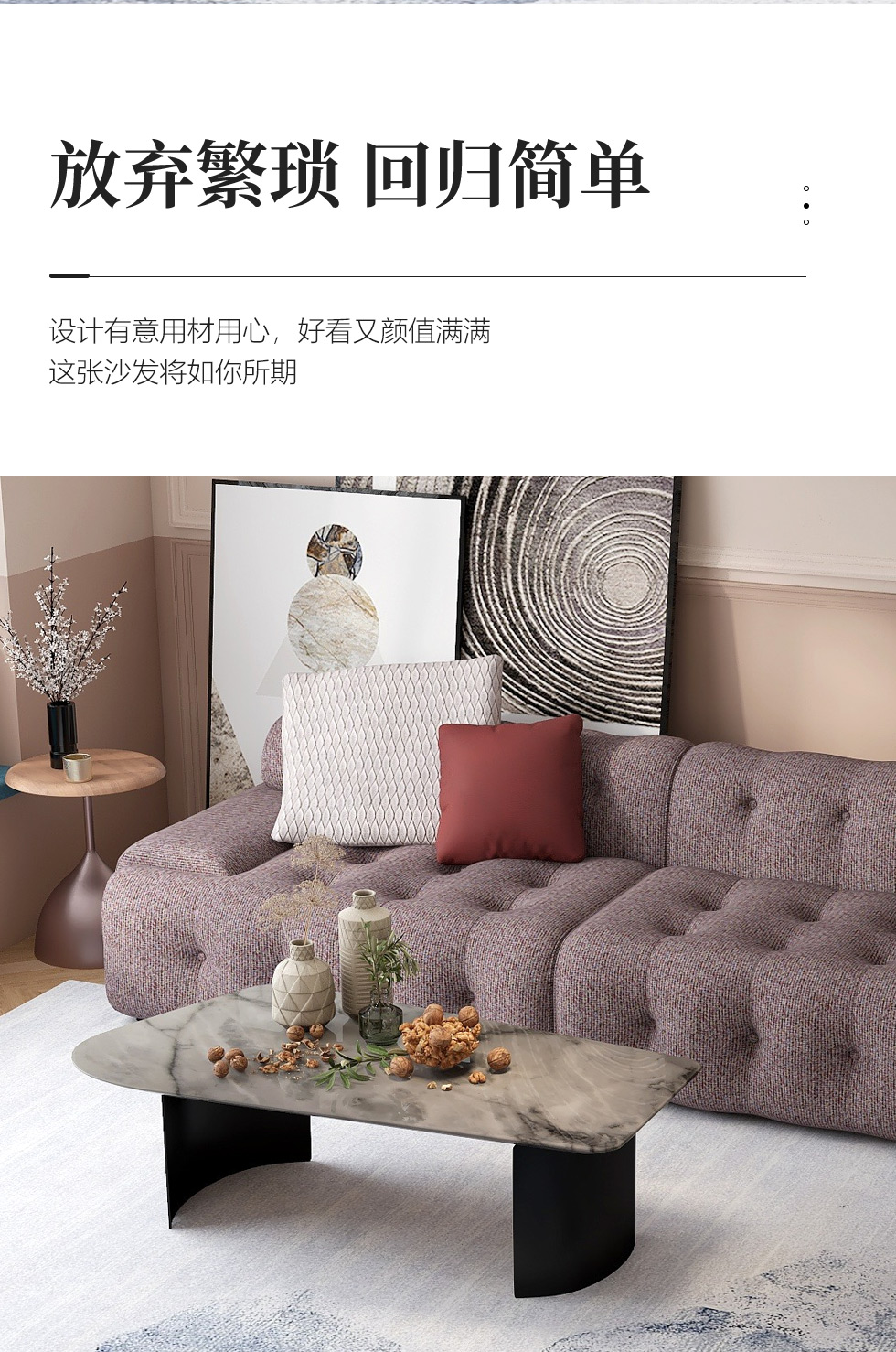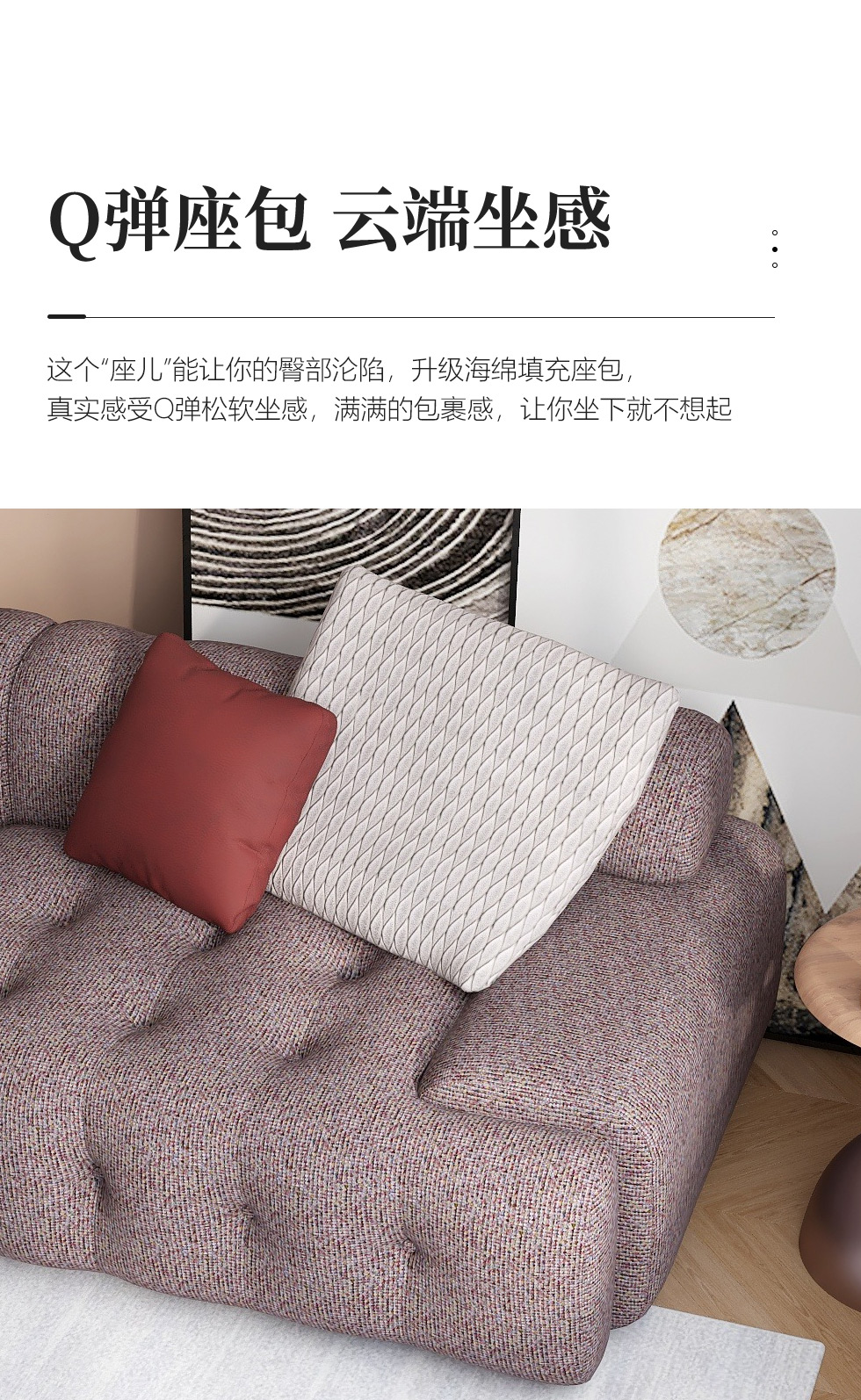 缔造 极简 优质棉麻布+羽绒+高密度海棉+实木脚 布艺沙发 两人位2.2米沙发