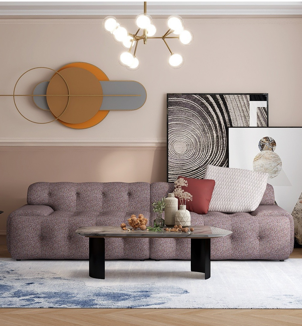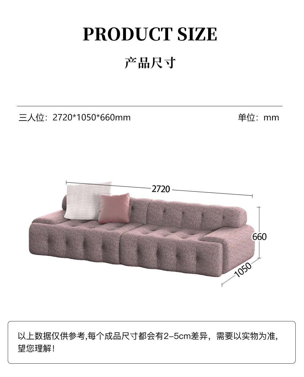 缔造 极简 优质棉麻布+羽绒+高密度海棉+金属矮脚 直排三人位 网红罗奇堡 布艺组合2.72米沙发