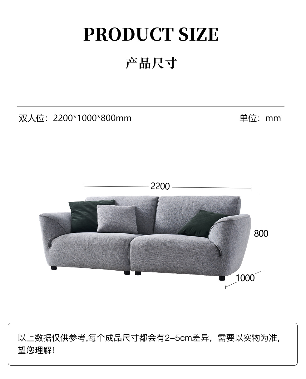 缔造 极简 优质棉麻布+羽绒+高密度海棉+实木脚 布艺沙发 两人位2.2米沙发