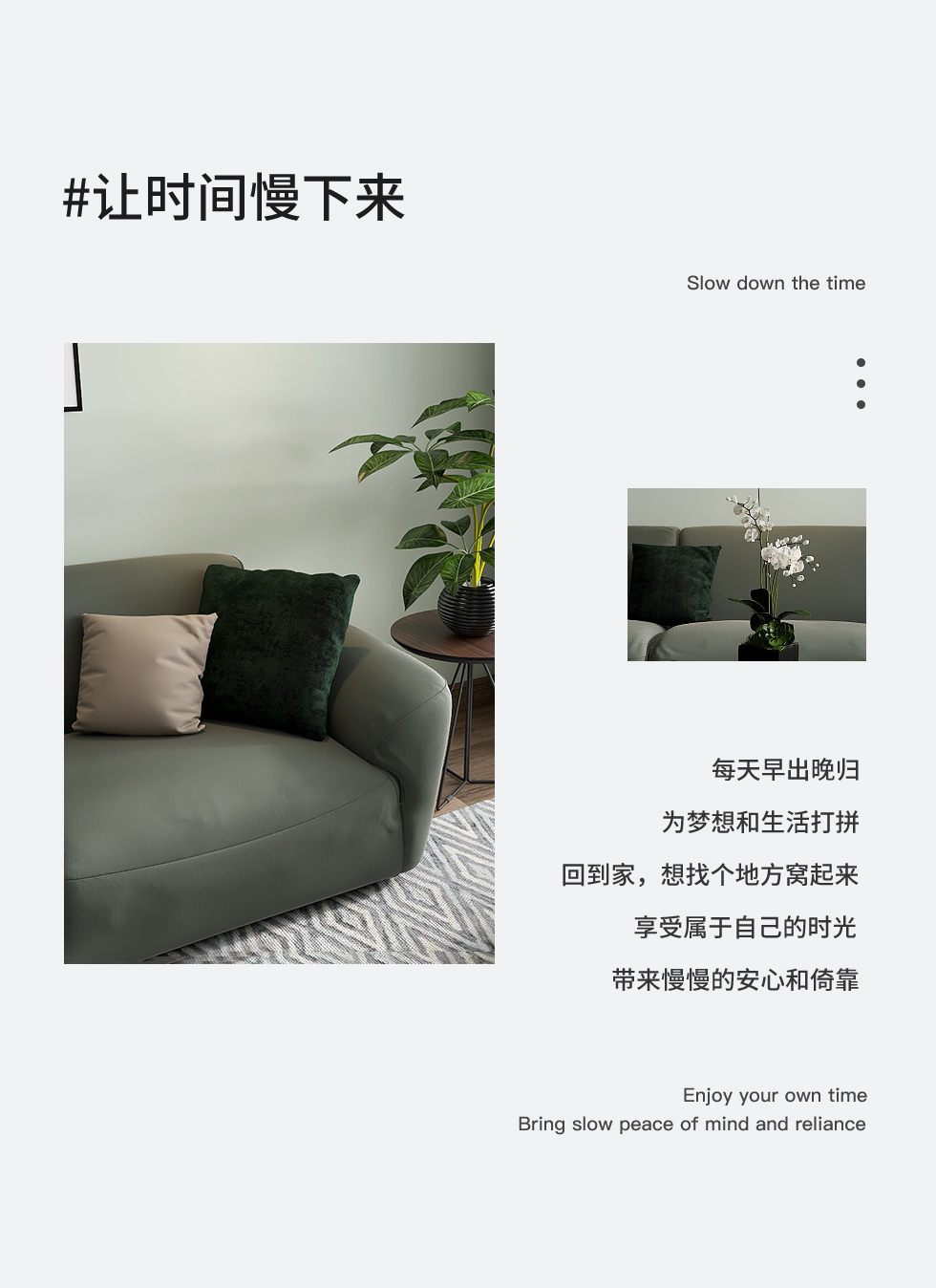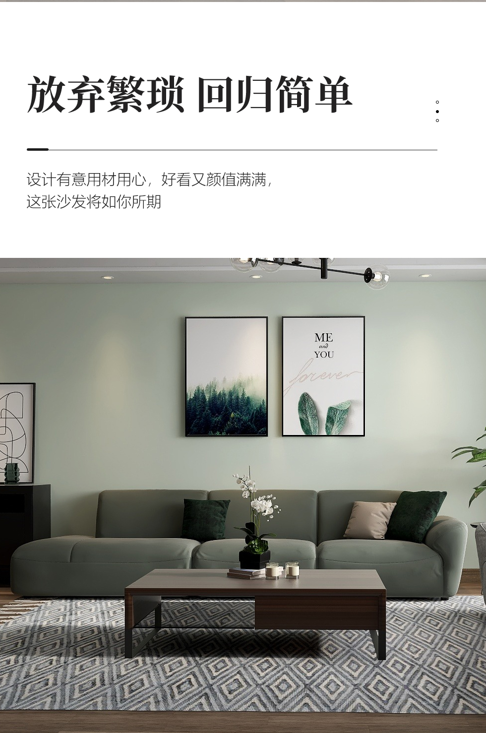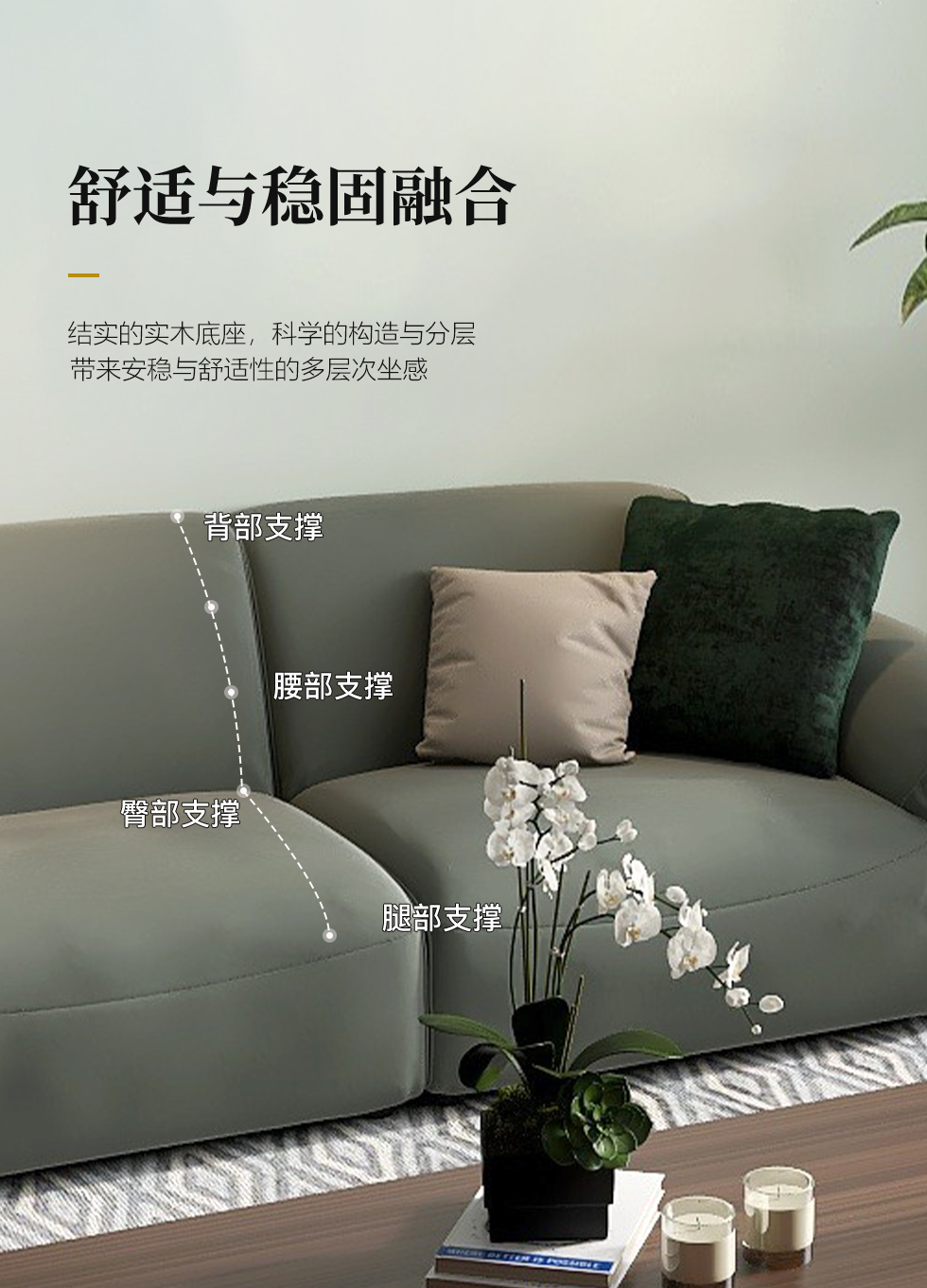 缔造 极简 优质棉麻布+羽绒+高密度海棉+碳素钢脚+北美白蜡木(做碳灰木色)边框+铁片包马铵硬皮 布艺沙发 四人位2.44米沙发