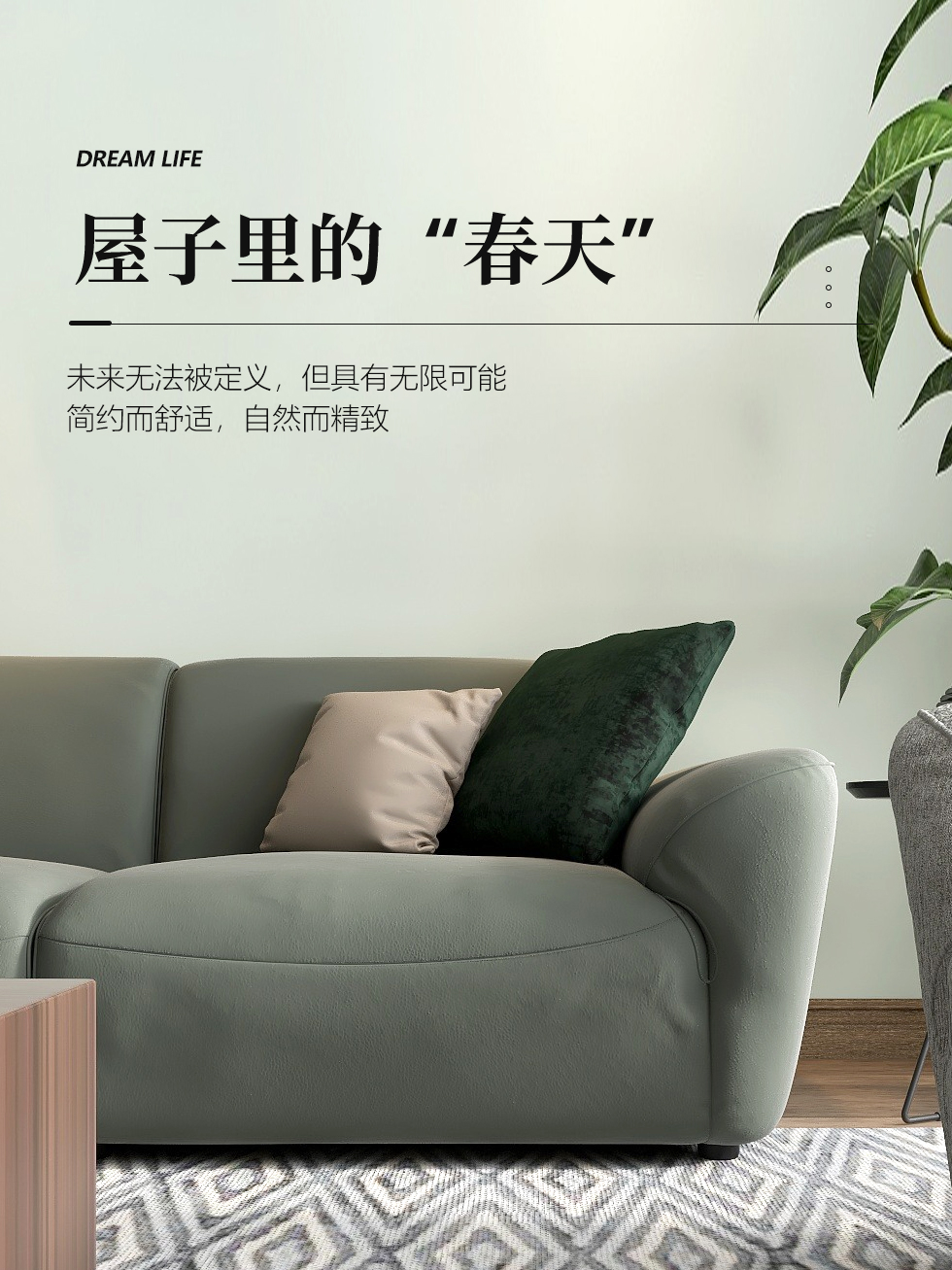 缔造 极简 接触面进口意大利头层真皮+羽丝棉+高密度海棉+碳素钢脚+北美白蜡木(做碳灰木色)真皮沙发 两人位2.4米沙发¥13877