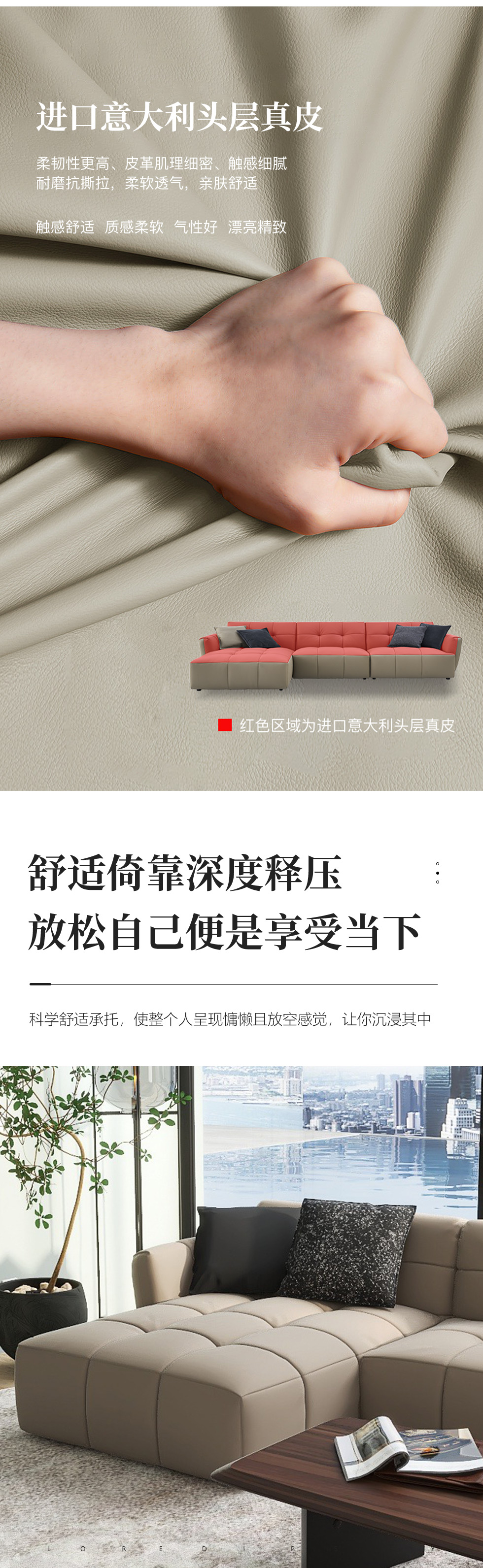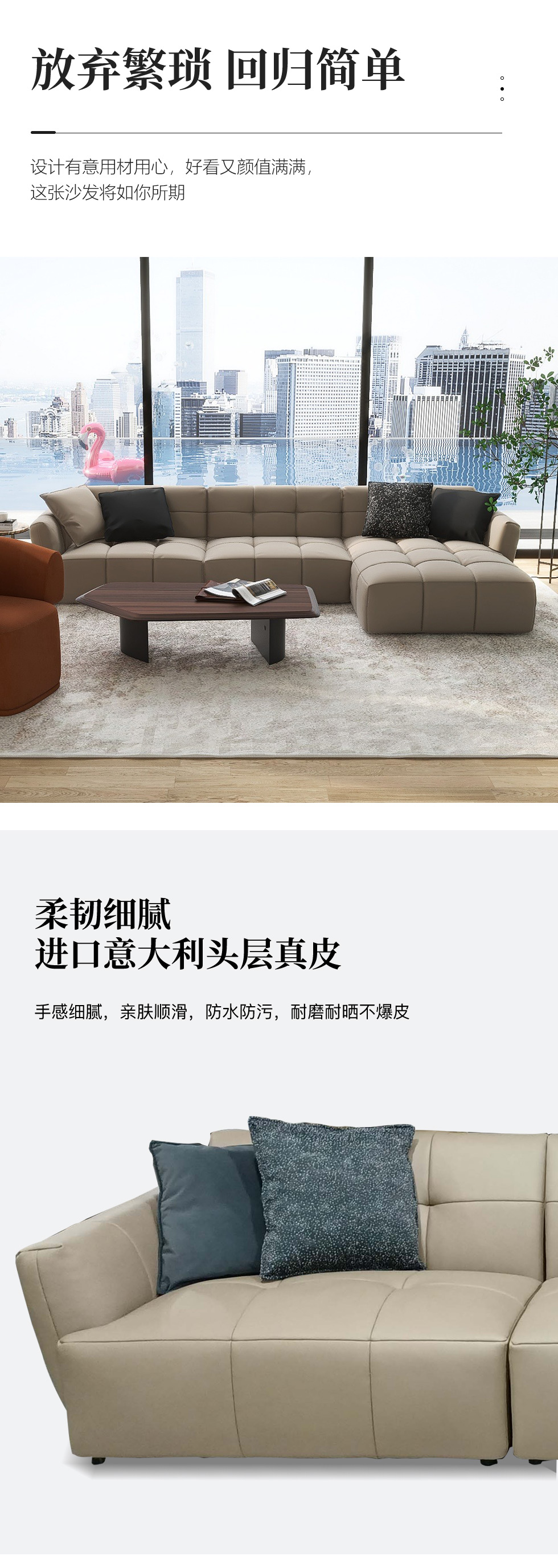 缔造 极简 接触面头层磨砂真皮+羽绒+高密度海棉+实木脚 皮艺转角3.3米沙发 (右1+无1+左贵)¥22953