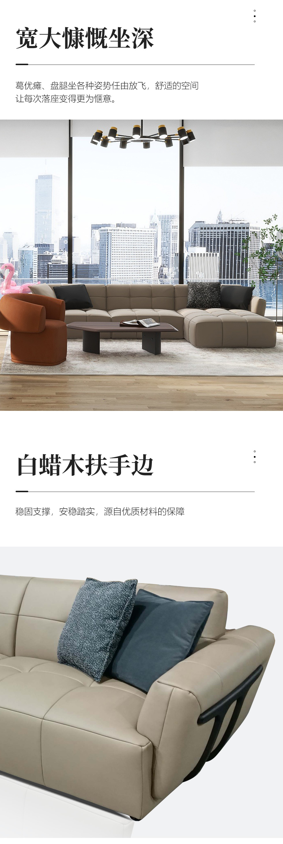 缔造 极简 接触面进口意大利头层真皮+羽丝棉+高密度海棉+碳素钢脚+北美白蜡木(做碳灰木色)真皮沙发 两人位2.4米沙发