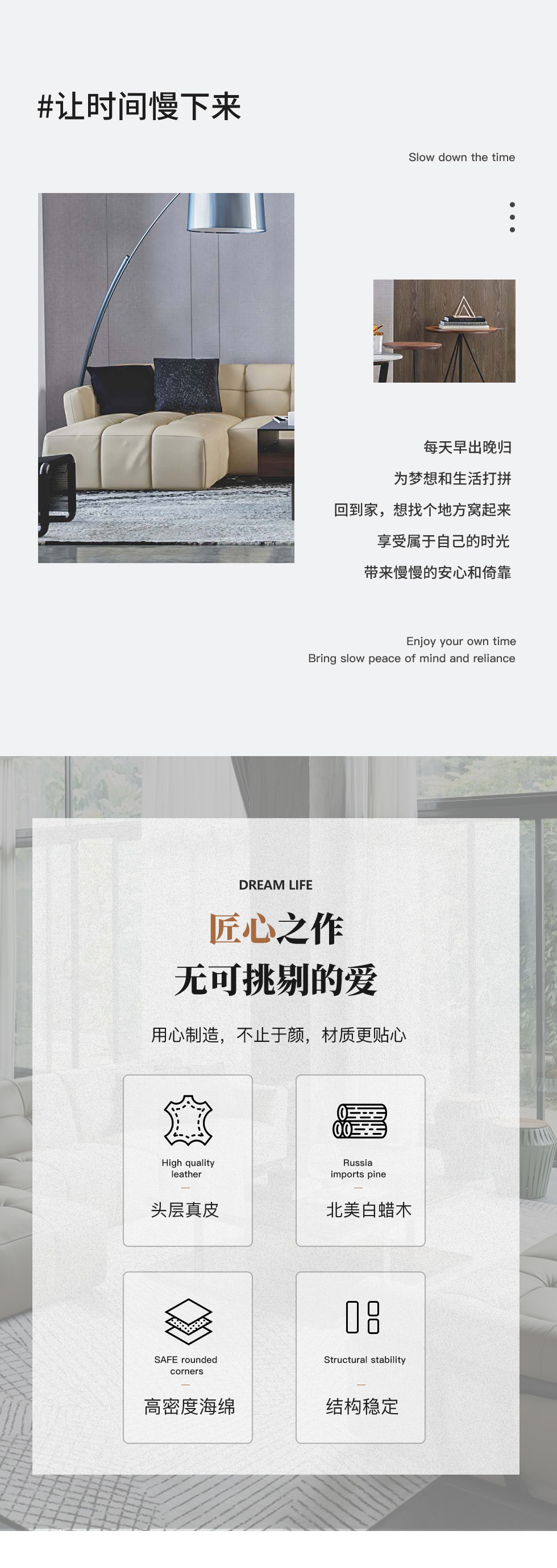 缔造 极简 接触面进口意大利头层真皮+羽丝棉+高密度海棉+碳素钢脚+北美白蜡木(做碳灰木色)真皮沙发 两人位2.4米沙发¥13877