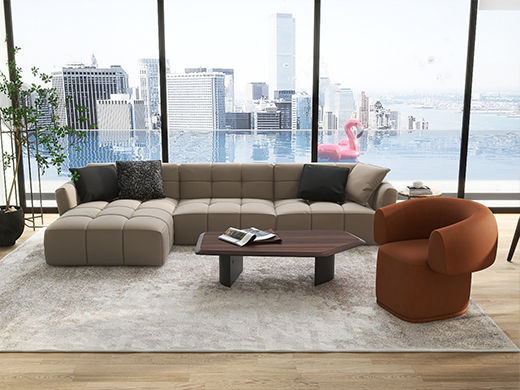 希奥 极简 接触面头层中厚压纹皮+圆胶脚皮艺转角沙发(4人位+左贵妃)网红云朵2.8米沙发¥31895