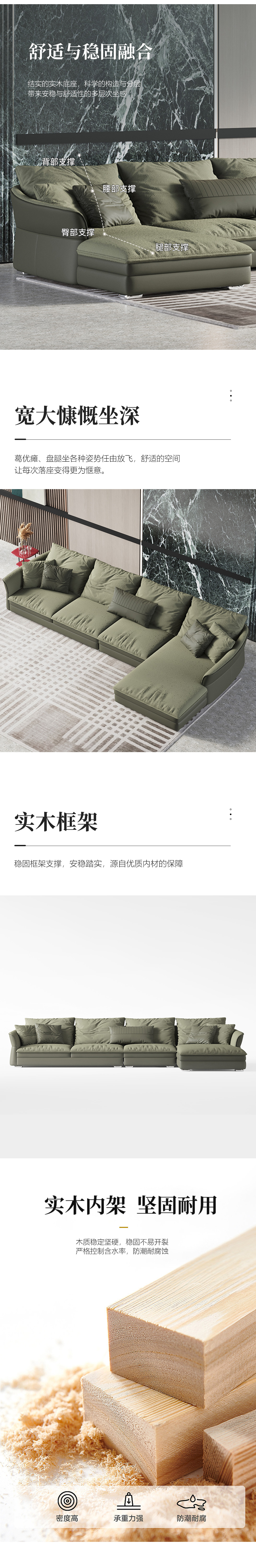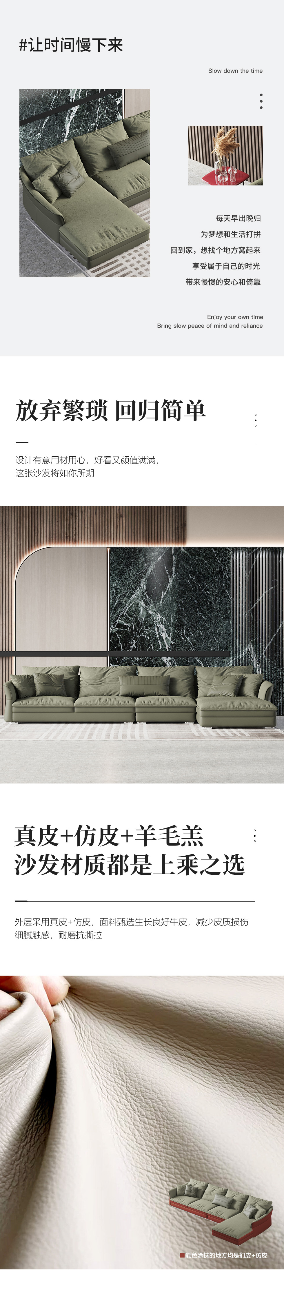 Minttu明途 极简 落叶松木+多层实木板+接触面头层真皮+仿真皮+电镀不锈钢五金脚 网红 香奈儿 四人位 2.8米沙发¥7567