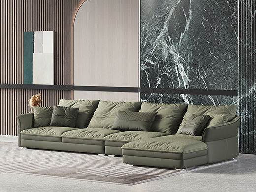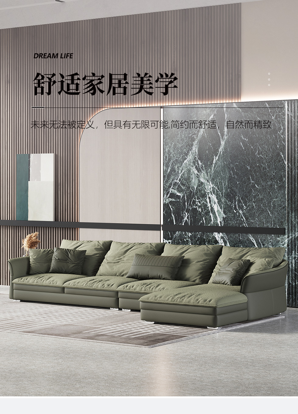 Minttu明途 极简 落叶松木+多层实木板+接触面头层真皮+仿真皮+电镀不锈钢五金脚(4个座包) 网红 迪兰 大四人位 3.47米沙发¥7773