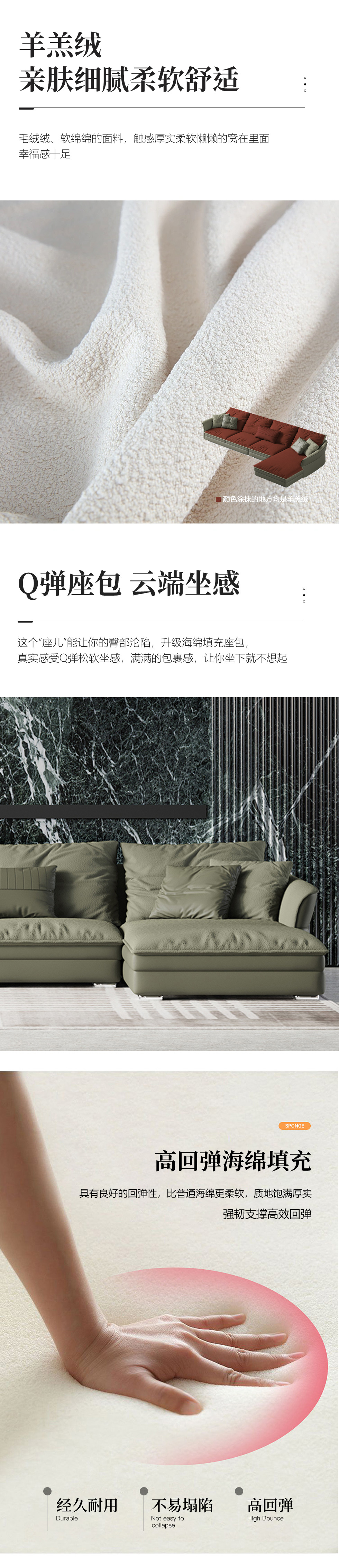 鹿屿 奶油风 羊羔绒SP177-系列+实木框架+高回弹海绵+羊羔绒+五金脚 布艺转角沙发 3+左贵3.76米沙发 (含抱枕)