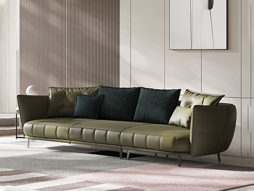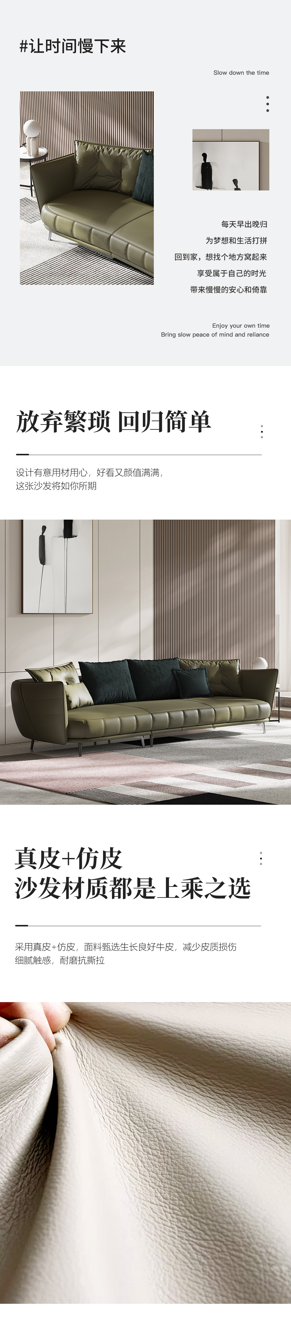 Minttu明途 极简 落叶松木+多层实木板+接触面头层真皮+仿真皮+电镀不锈钢五金脚 网红 罗杰 四人位 2.8米沙发¥7762