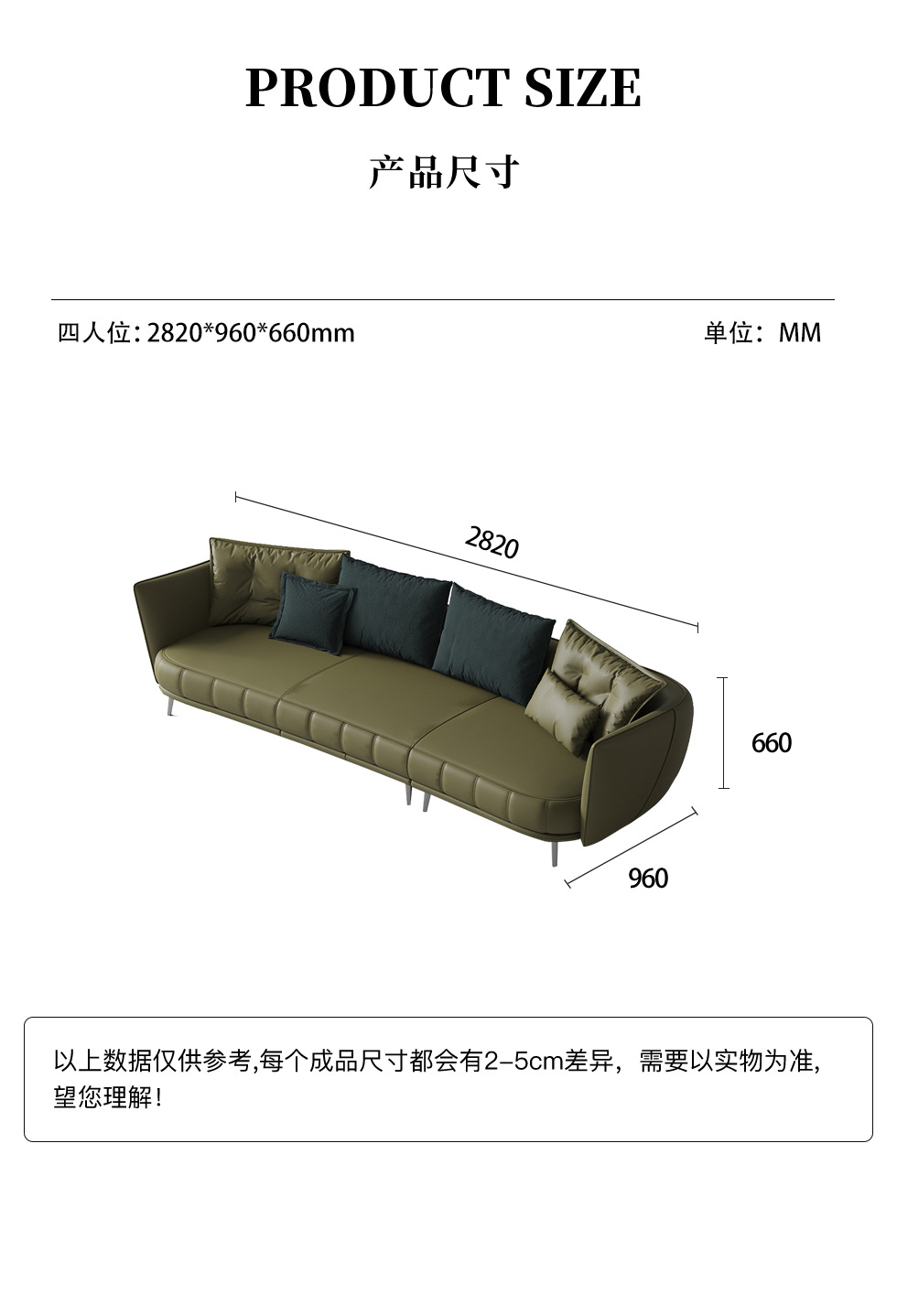 Minttu明途 极简 实木框架+高回弹海绵+扪真皮+仿皮+羊羔绒+五金脚 皮艺沙发 四人沙发双扶手2.82米沙发(含抱枕) |