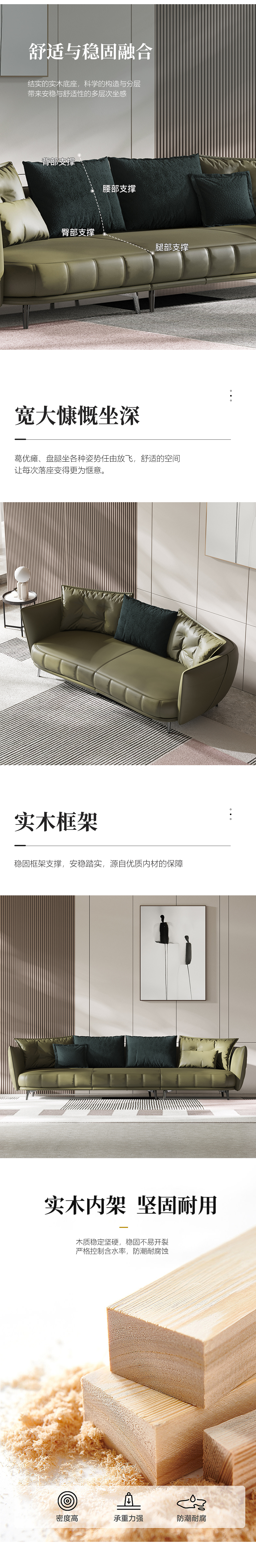Minttu明途 极简 落叶松木+多层实木板+接触面头层真皮+仿真皮+电镀不锈钢五金脚 网红 香奈儿 四人位 2.8米沙发¥7567