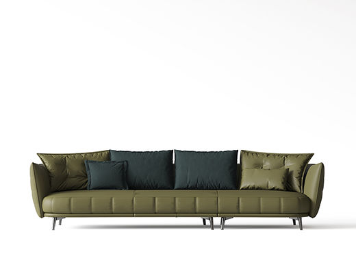 Minttu明途 极简 落叶松木+多层实木板+接触面头层真皮+仿真皮+电镀不锈钢五金脚 网红 劳伦斯 大四人位 3.36米沙发