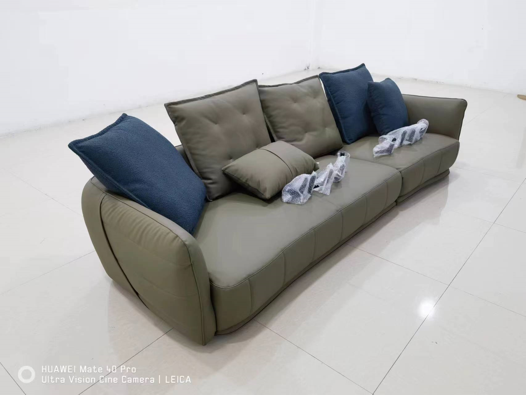 Minttu明途 极简 落叶松木+多层实木板+接触面头层真皮+仿真皮+电镀不锈钢五金脚 网红 布雷泽 四人位 2.8米沙发¥9694