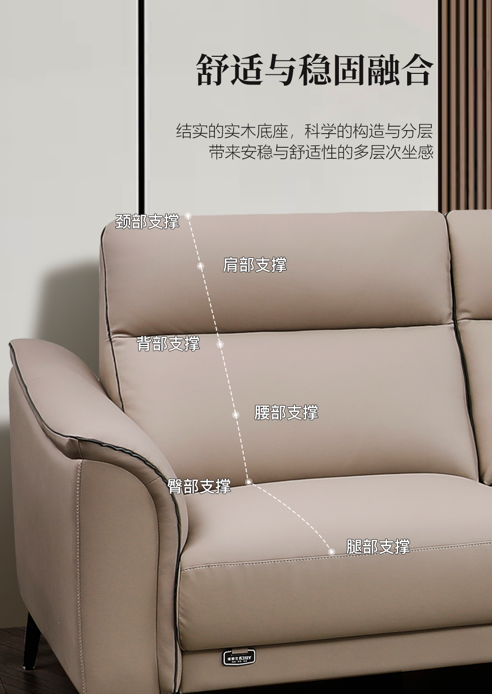 e家优选 现代简约 接触面头层黄牛皮 按木松木组合内框架 蛇簧+带 高回弹海棉座包 靠背3A公仔Q弹棉填充 功能架迈博五金 (1+4)组合皮艺功能沙发