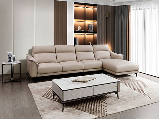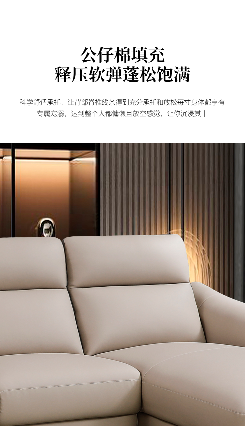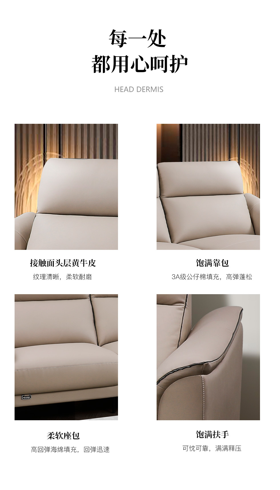 e家优选 现代简约 接触面头层黄牛皮 按木松木组合内框架 蛇簧+带 高回弹海棉座包 靠背3A公仔Q弹棉填充 功能架迈博五金 (1+4)组合皮艺功能沙发¥14241