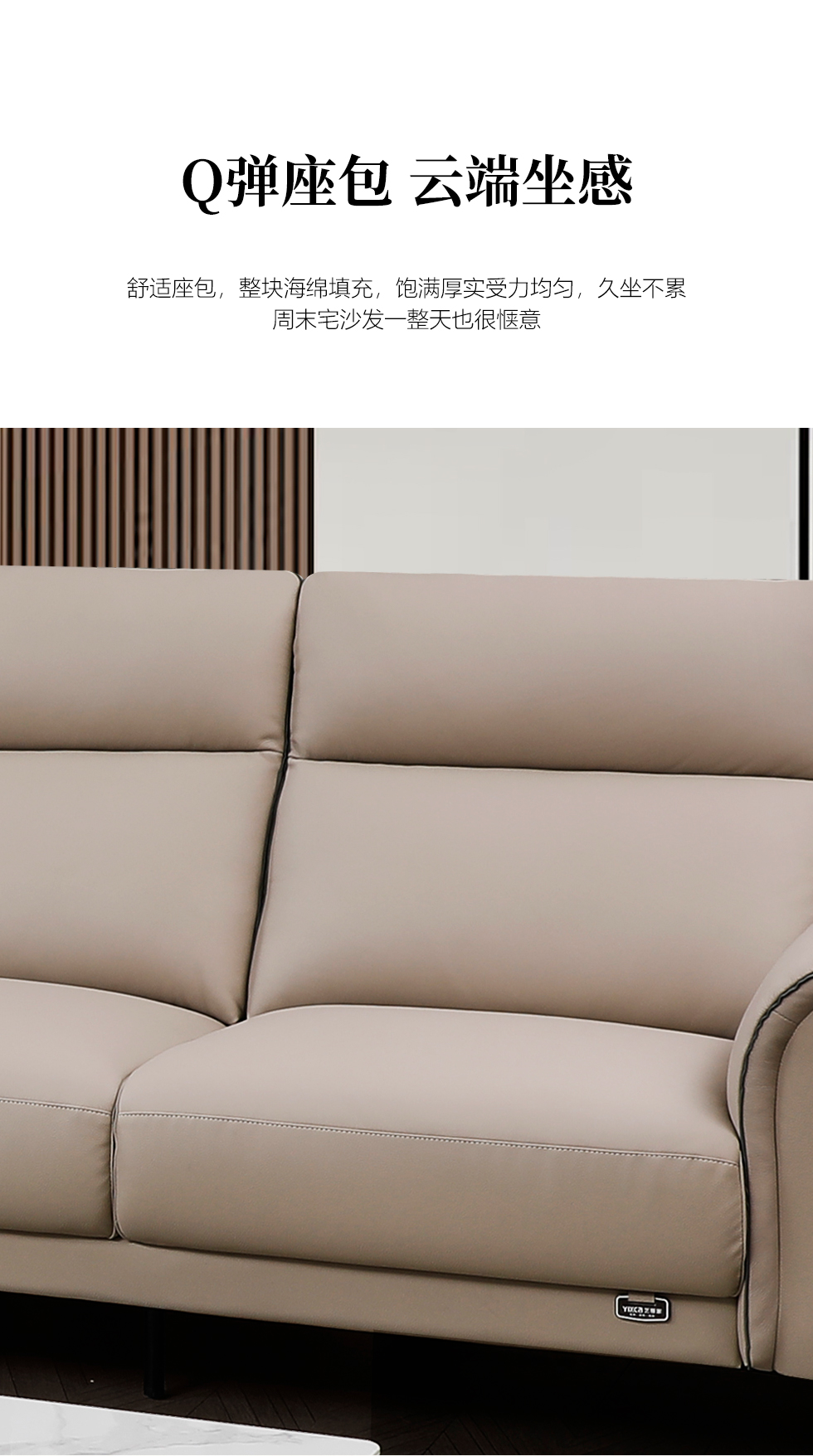 e家优选 现代简约 接触面头层黄牛皮 按木松木组合内框架 蛇簧+绷带 高回弹海棉座包 靠背3A公仔Q弹棉填充 3+3+脚踏 皮艺组合沙发