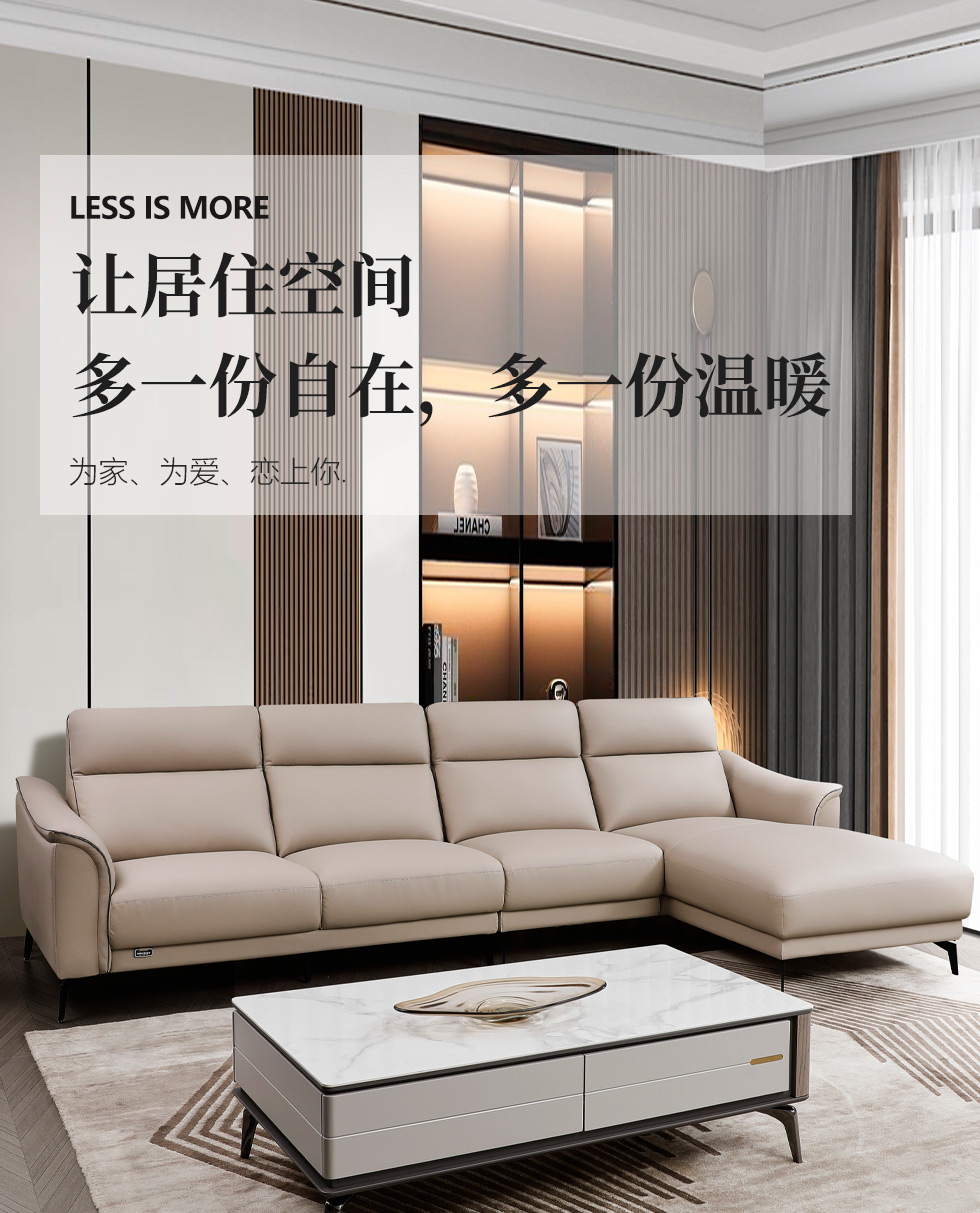 e家优选 现代简约 接触面头层黄牛皮 按木松木组合内框架 蛇簧+绷带 高回弹海棉座包和靠背 单位+四人位 组合皮艺沙发¥11503