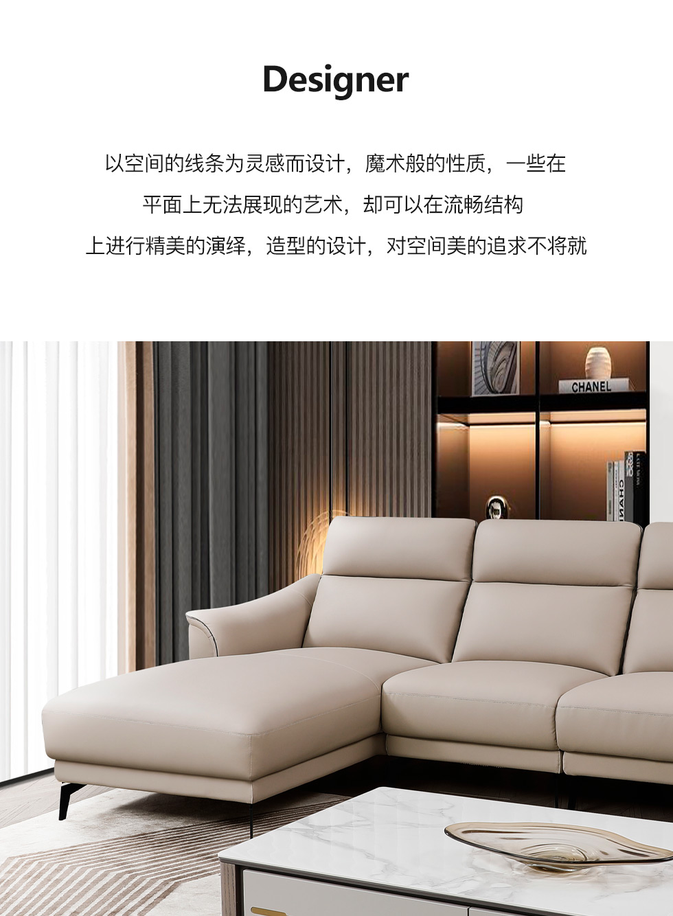 E家优选 现代简约 接触面进口头层牛皮+进口 落叶松+高 回弹海绵+锐迈电机 三电动功能2.75米沙发床e家优选 现代简约 接触面头层黄牛皮 按木松木组合内框架 蛇簧+绷带 高回弹海棉座包 靠背3A公仔Q弹棉填充 中灰蓝 1+3+左贵妃 皮艺转角沙发