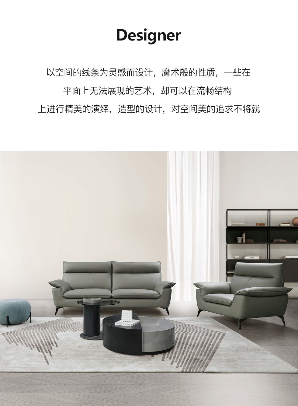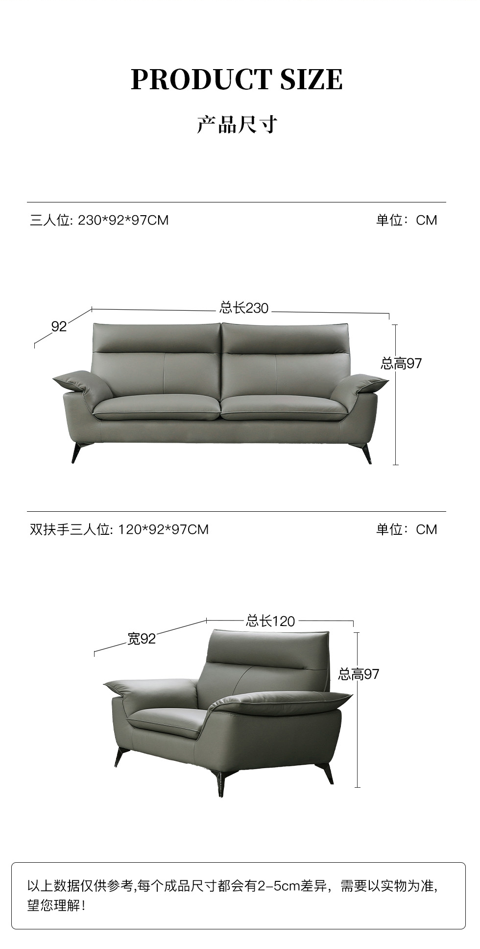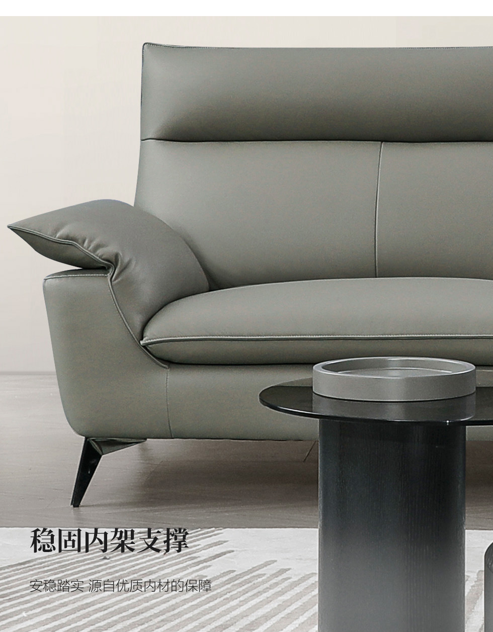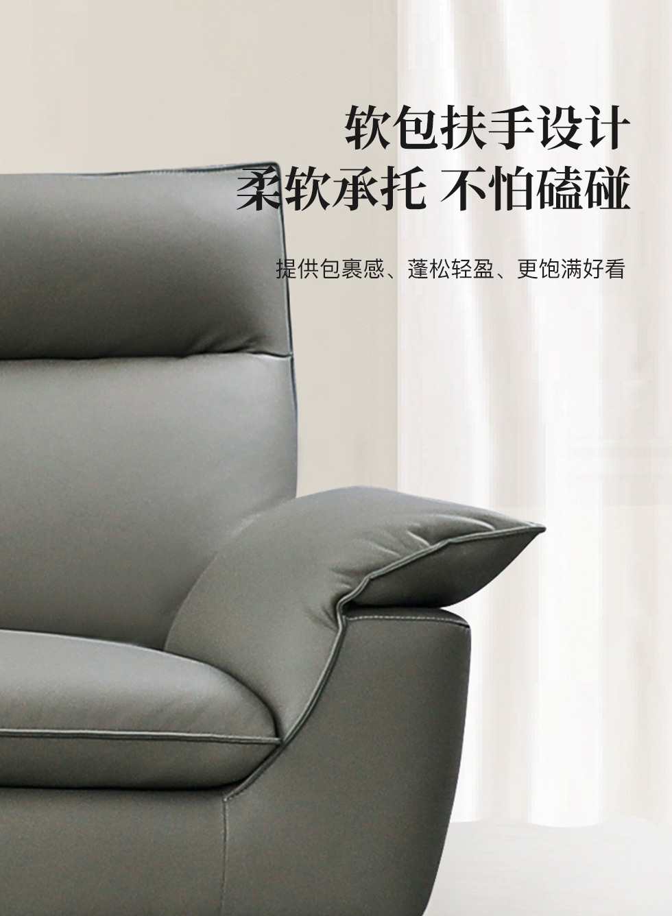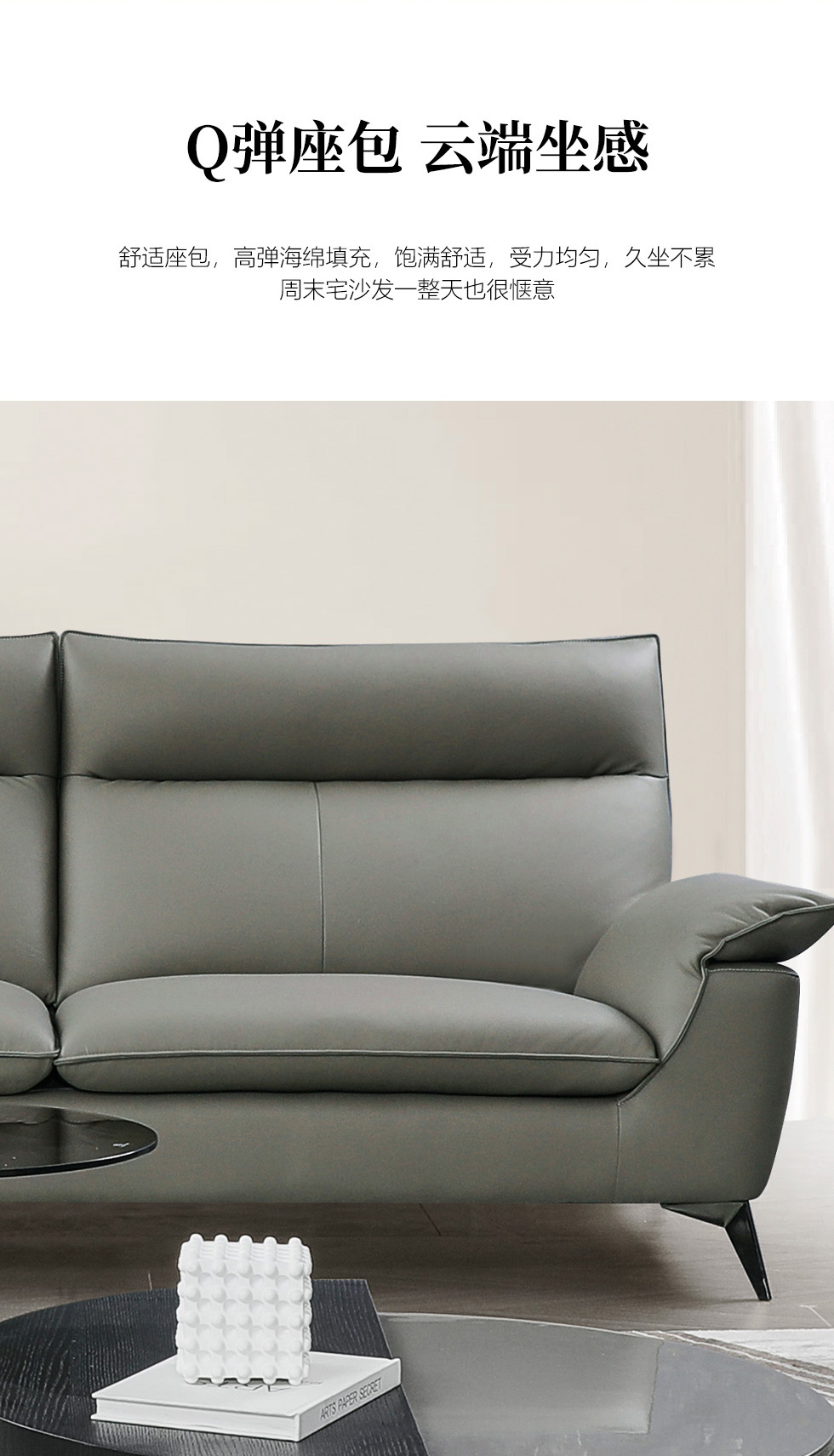 e家优选 现代简约 接触面头层黄牛皮 按木松木组合内框架 蛇簧+绷带 高回弹海棉座包靠包 扶手羽绒填充 中灰 单人位 皮艺1.2米沙发