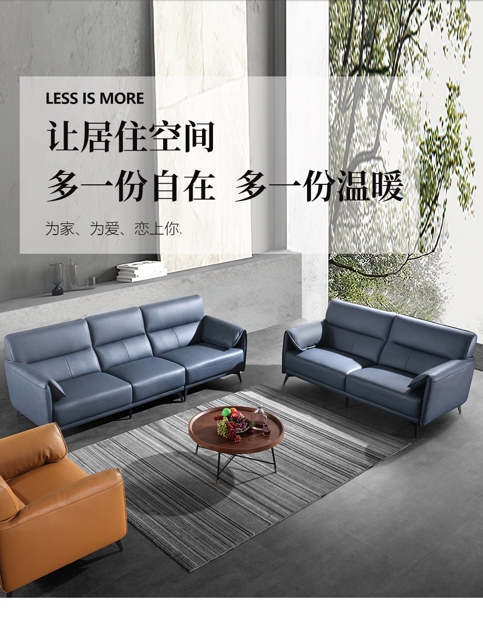 德卡图 现代简约 松木+多层板板+接触面头层牛皮+高回弹海绵+靠包羽绒填充+五金脚 3+3+转+踏 沙发¥10837