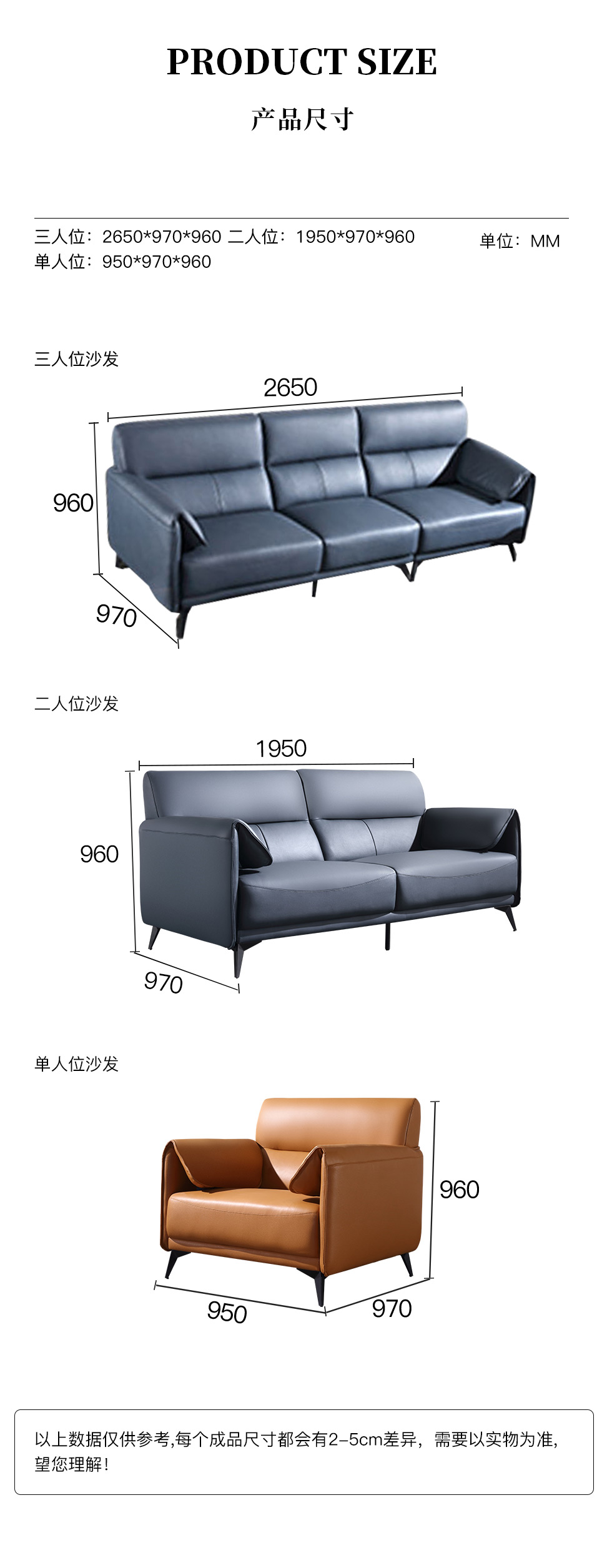 德卡图 现代简约 松木+多层板板+接触面头层牛皮+仿皮+高回弹海绵+靠包羽绒填充+胶脚 双扶手三位 2.26米沙发