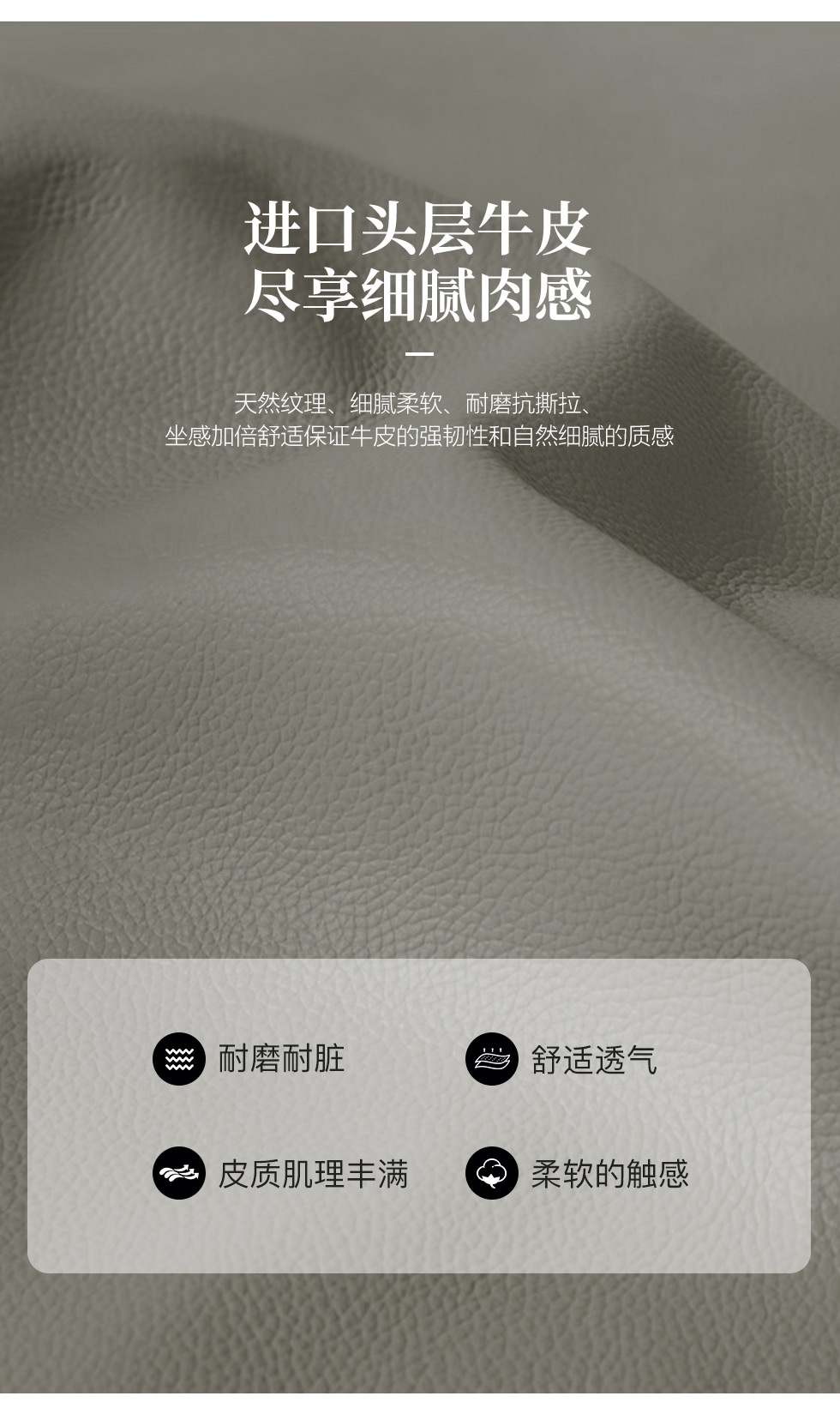德卡图 现代简约 松木+多层板板+接触面头层牛皮+高回弹海绵+靠包羽绒填充+五金脚 3+3+转+踏 沙发