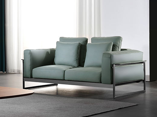 德卡图 现代简约 接触面进口头层牛皮+高回弹海绵+俄罗斯进口落叶松框架+靠背扶手座底羽绒+不锈钢拉丝钢架 二人位 绿色 皮艺1.8米沙发