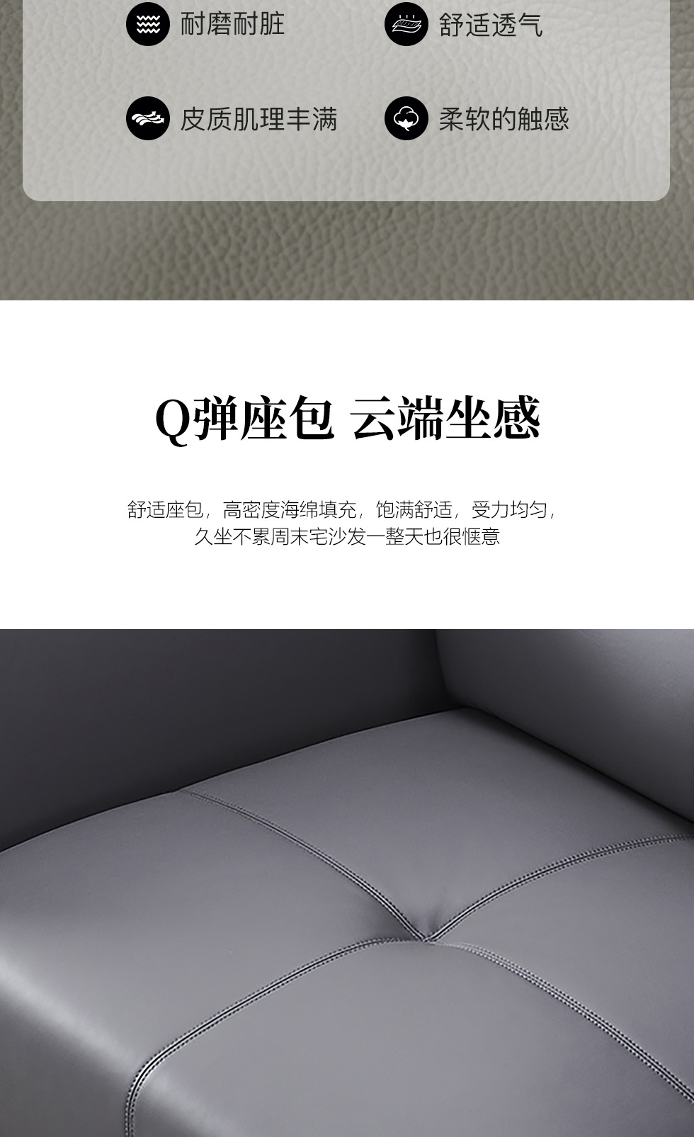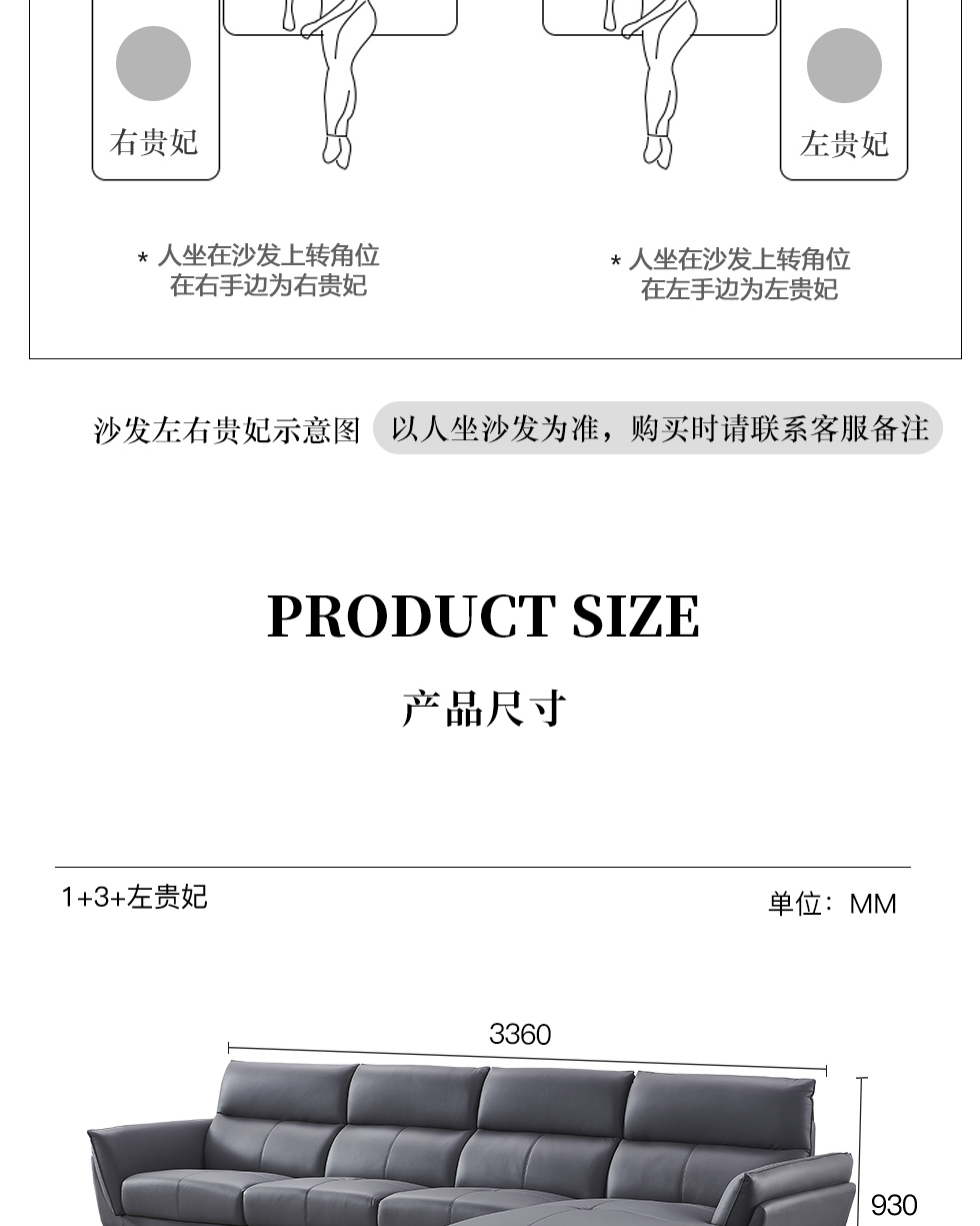 德卡图 现代简约 松木+多层板板+接触面头层牛皮+仿皮+高回弹海绵+靠包羽绒填充+胶脚 直排贵妃+无扶单+左贵妃(座前、拼顶仿皮 ) 3.75米沙发¥11247