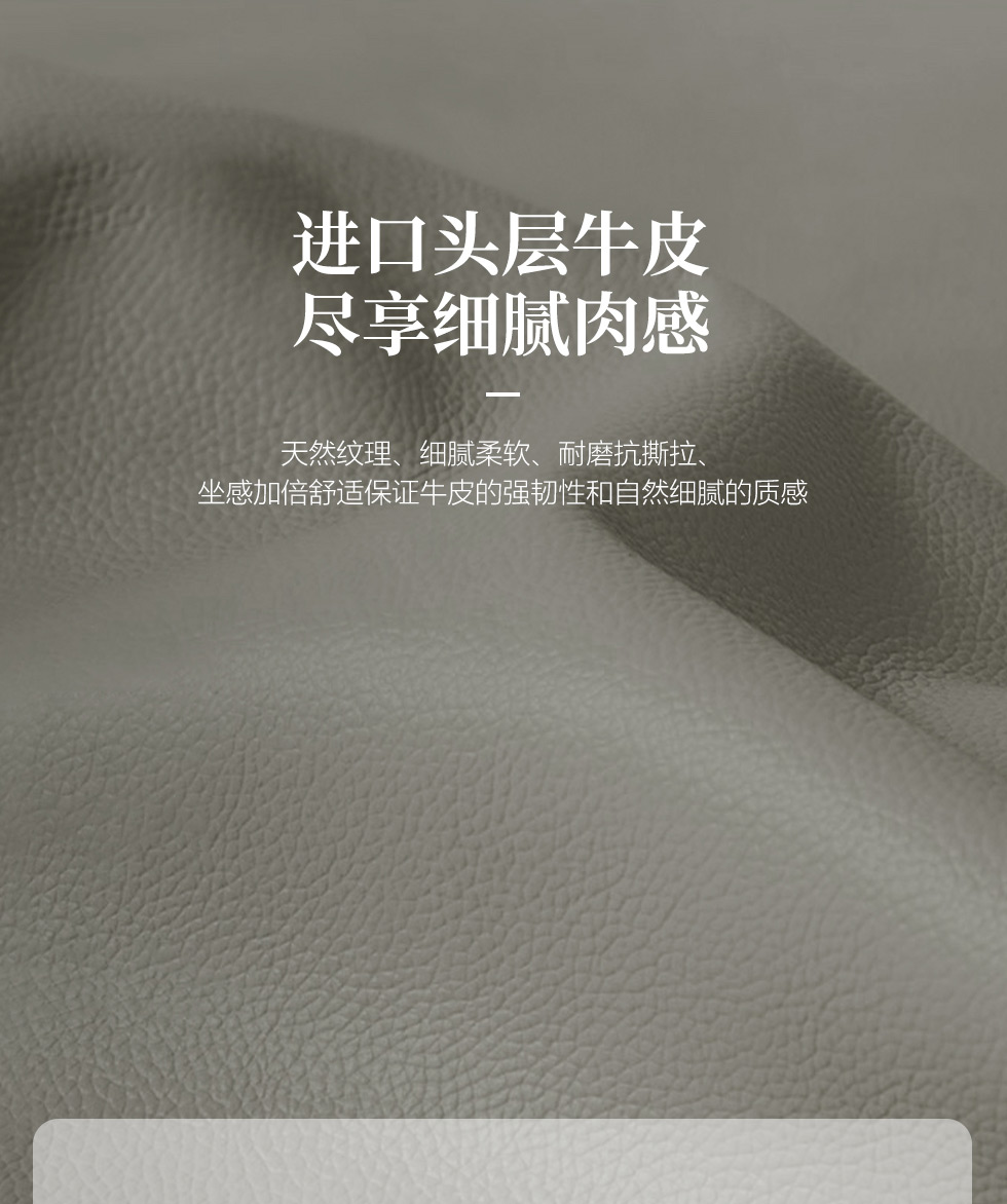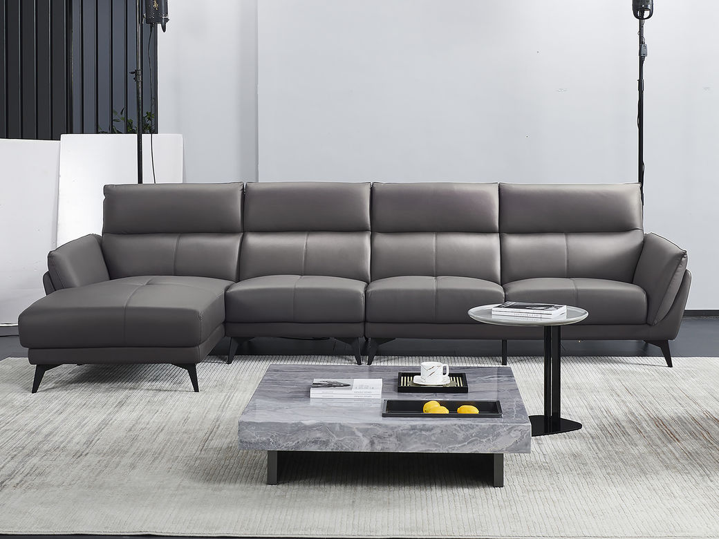 德卡图 现代简约 接触面进口头层牛皮+高密度海绵+俄罗斯进口落叶松框架+可活动头枕 1+3+左贵妃位 灰色 皮艺转角3.5米沙发