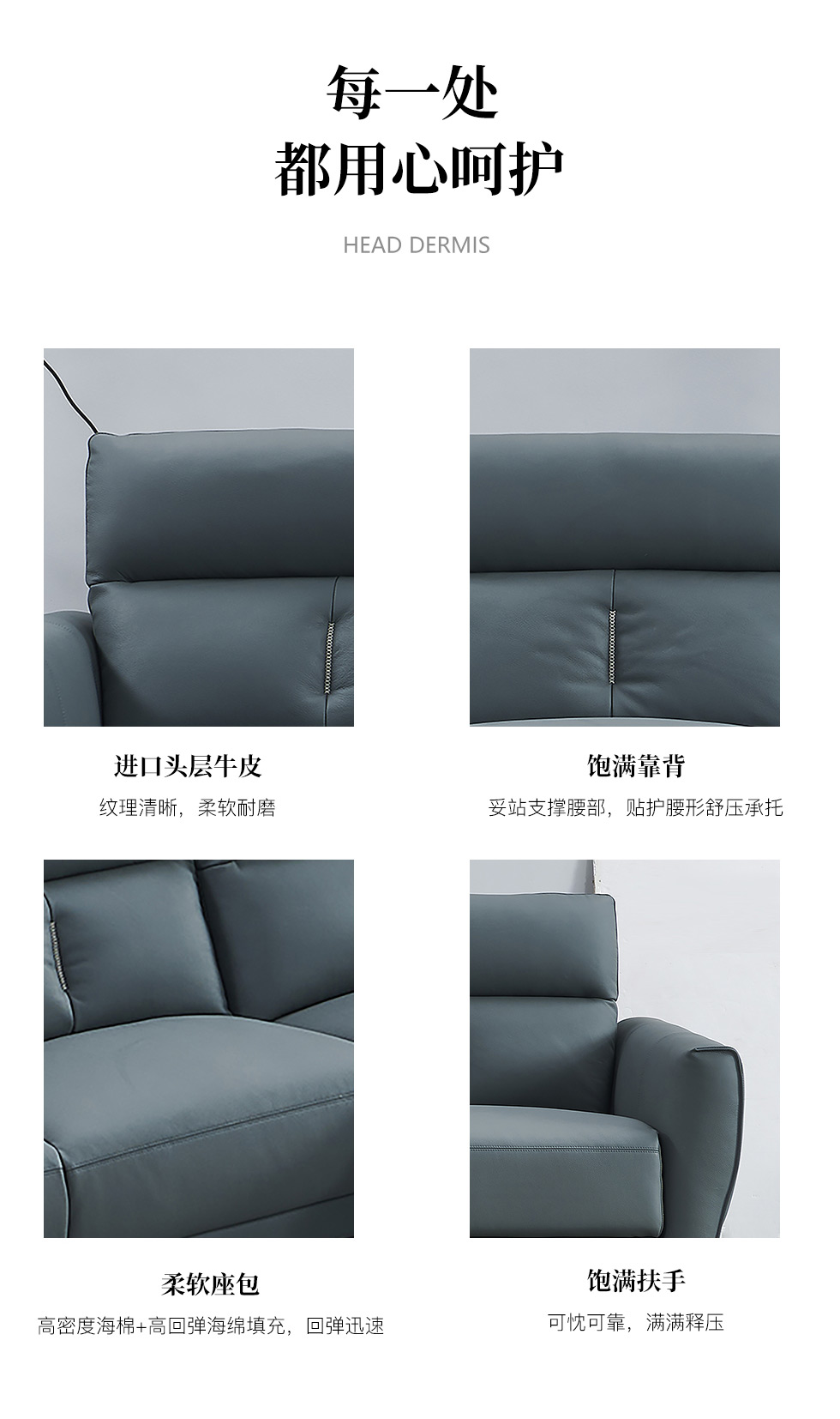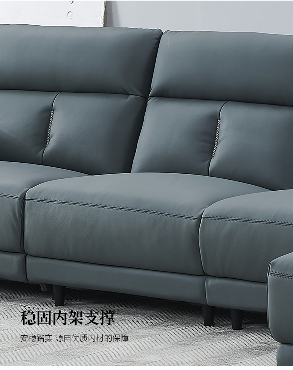 德卡图 现代简约 接触面进口头层牛皮+高密度海绵+俄罗斯进口落叶松框架 1+3+左贵妃位 浅蓝色 皮艺转角3.25米沙发¥11301