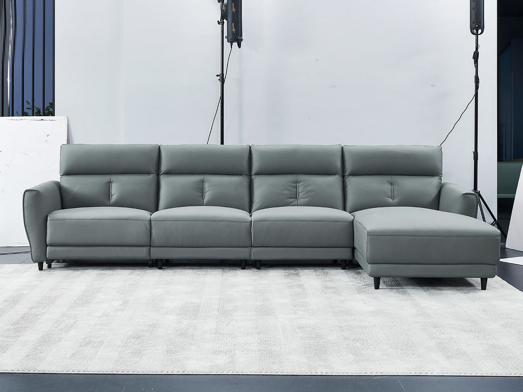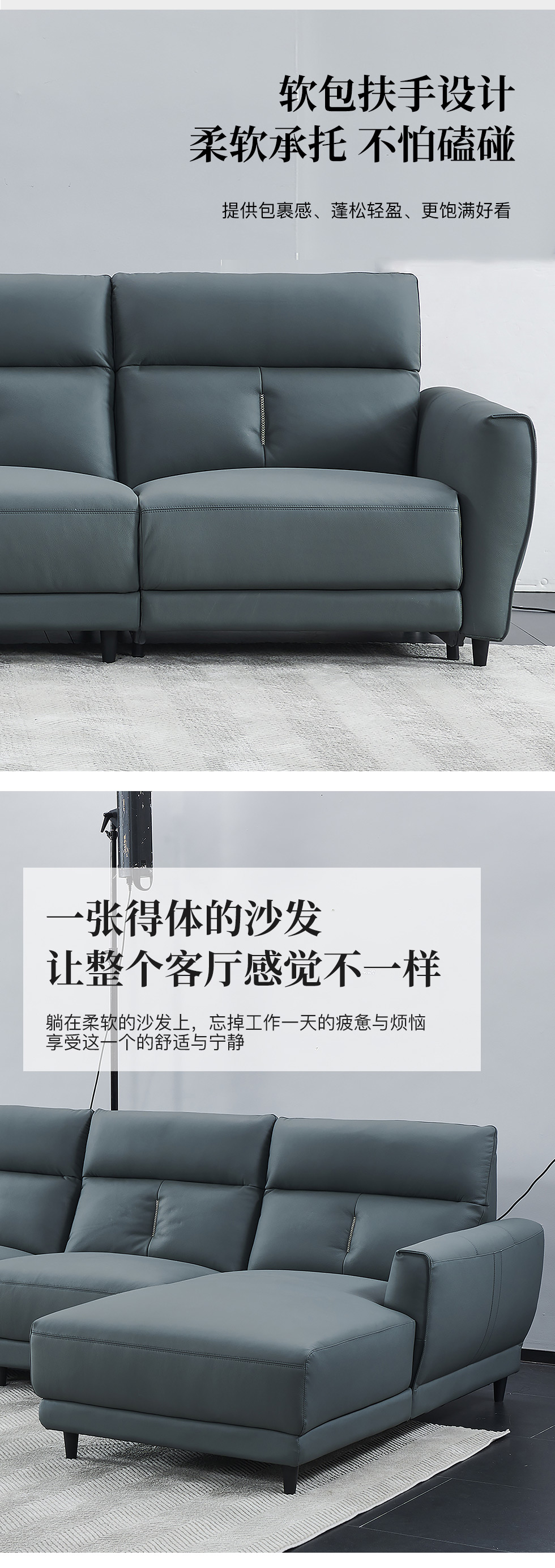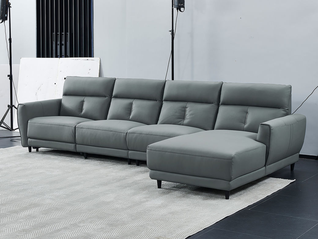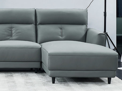 德卡图 现代简约 接触面进口头层牛皮+高密度海绵+俄罗斯进口落叶松框架+可活动头枕 1+3+左贵妃位 灰色 皮艺转角3.5米沙发