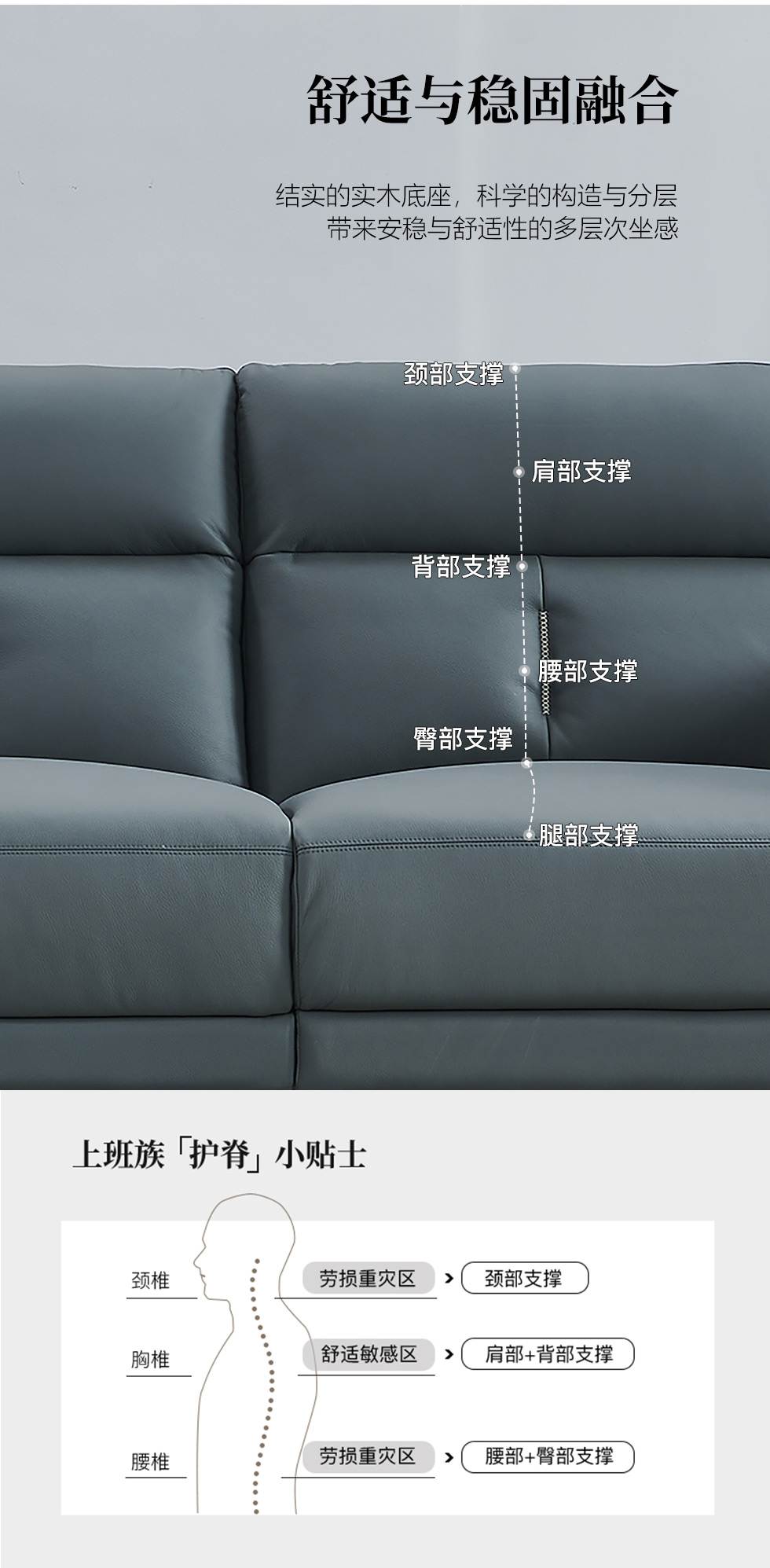 德卡图 现代简约 松木+多层板板+接触面头层牛皮+仿皮+高回弹海绵+靠包羽绒填充+胶脚 右扶单+无扶单+直排贵妃(左无扶贵)座前、拼顶仿皮 3.75米沙发
