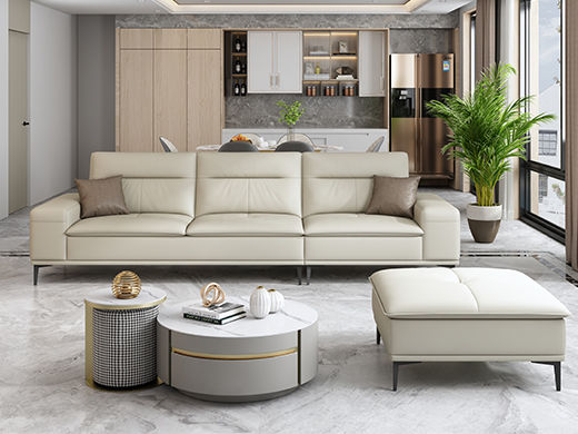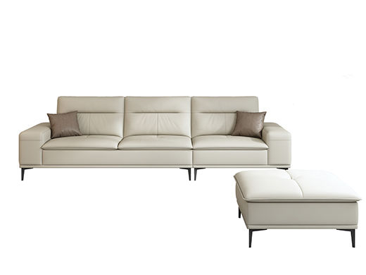 A系优选 现代简约 接触面超纤皮革+仿皮+抛光实木内架+合成板材框架+坐包填充高密度纯海绵+12分五金脚米白 四位+脚踏 2.9米沙发
