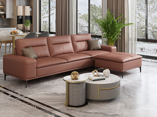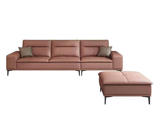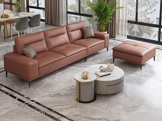 A系优选 现代简约 接触面超纤皮革+仿皮+抛光实木内架+合成板材框架+坐包填充高密度纯海绵+12分五金脚 棕色 四位+脚踏 2.9米沙发