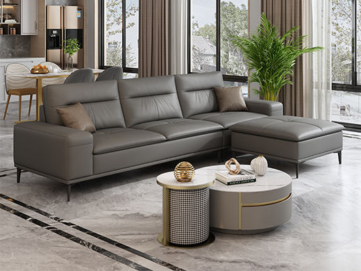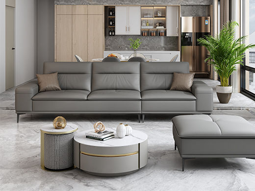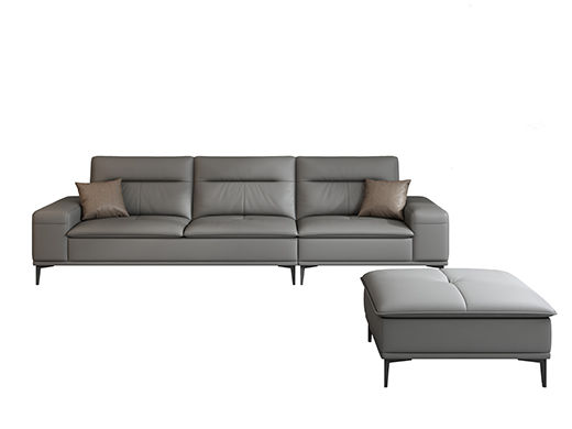 A系优选 现代简约 接触面超纤皮革+仿皮+抛光实木内架+合成板材框架+坐包填充高密度纯海绵+12分五金脚 高级灰 四位+脚踏 2.9米沙发 |