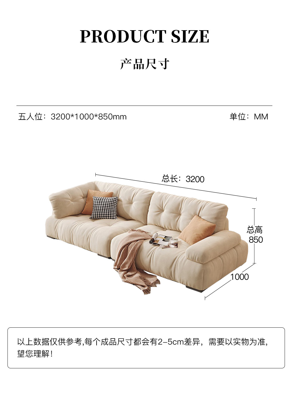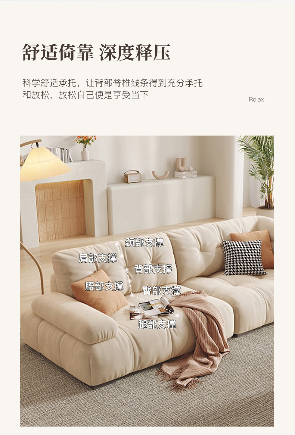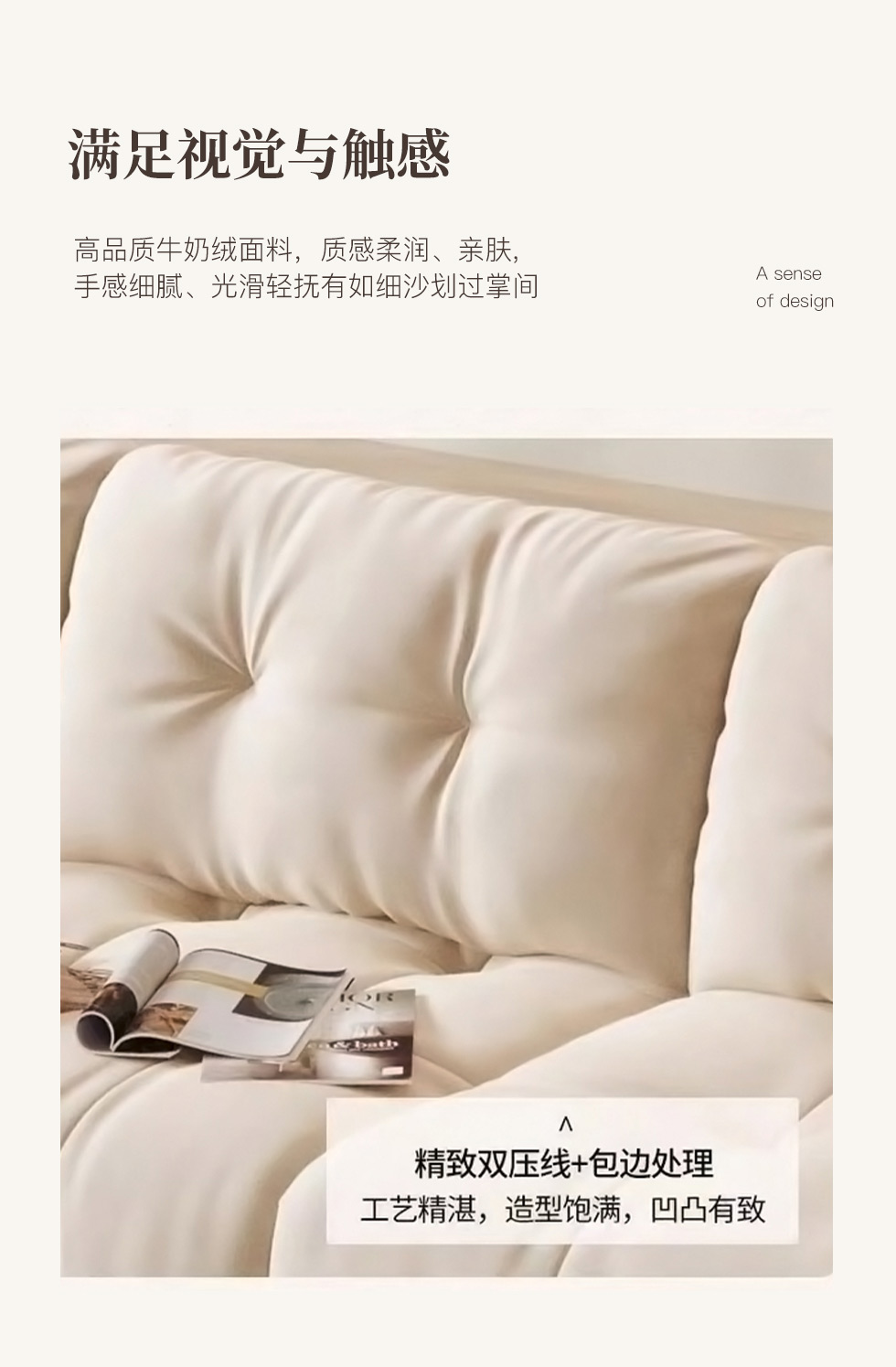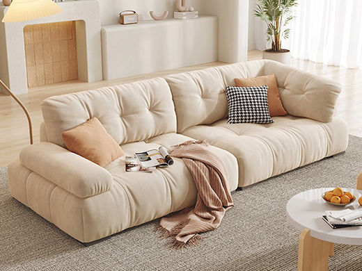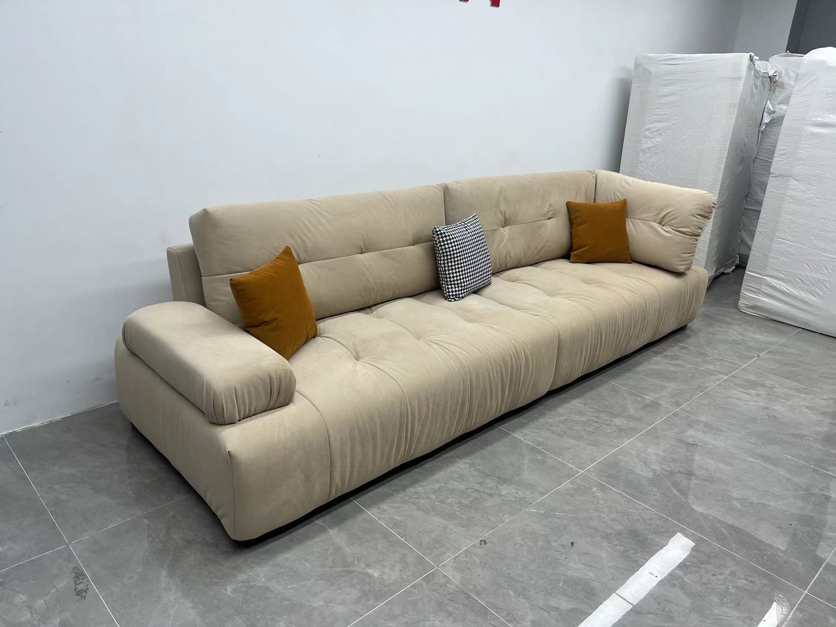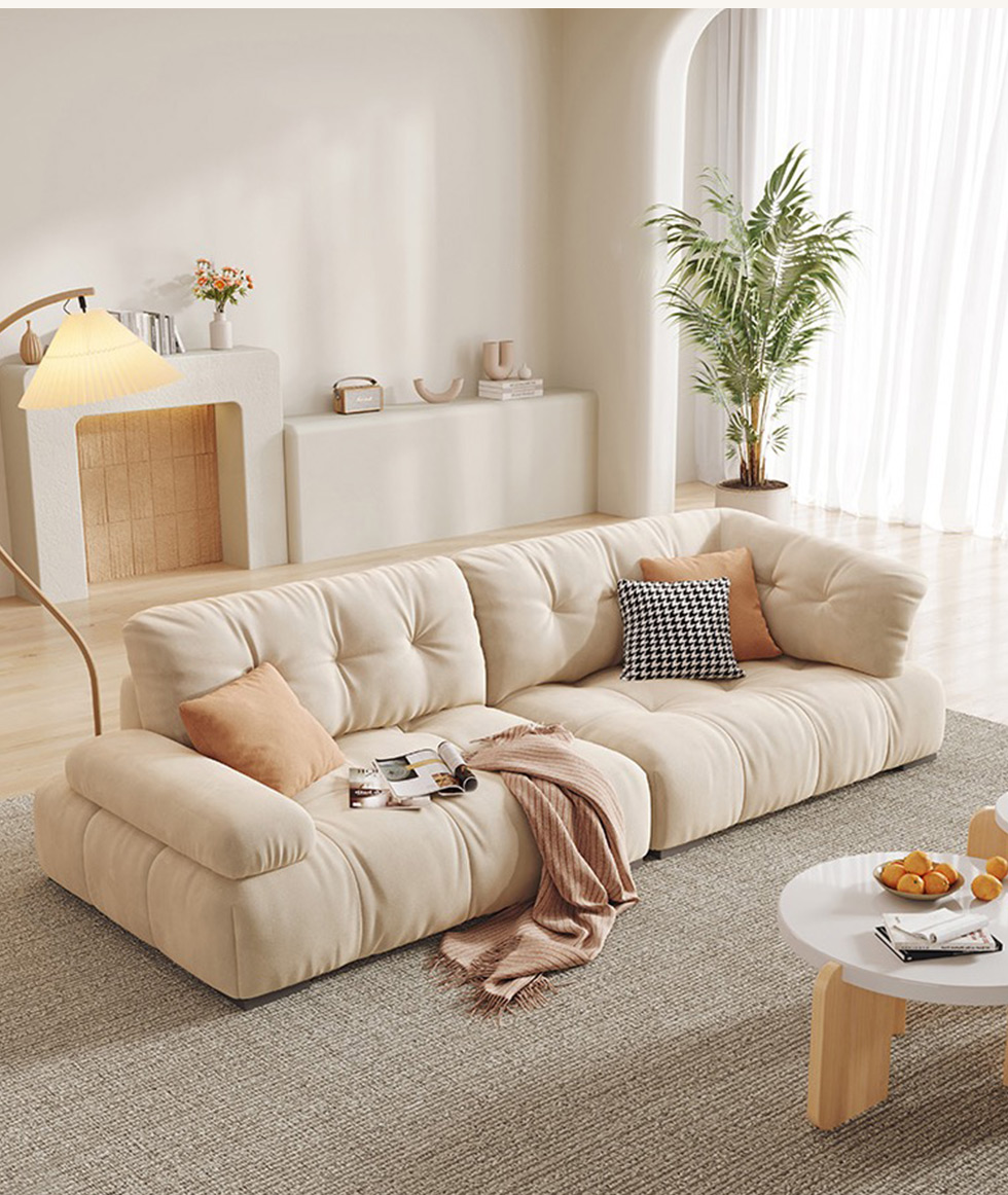 A系优选 奶油风 高密度海绵+全实木框架 牛奶绒面料 靠背羽绒填充 图片色 五人位 网红豆腐块 3.3米 沙发