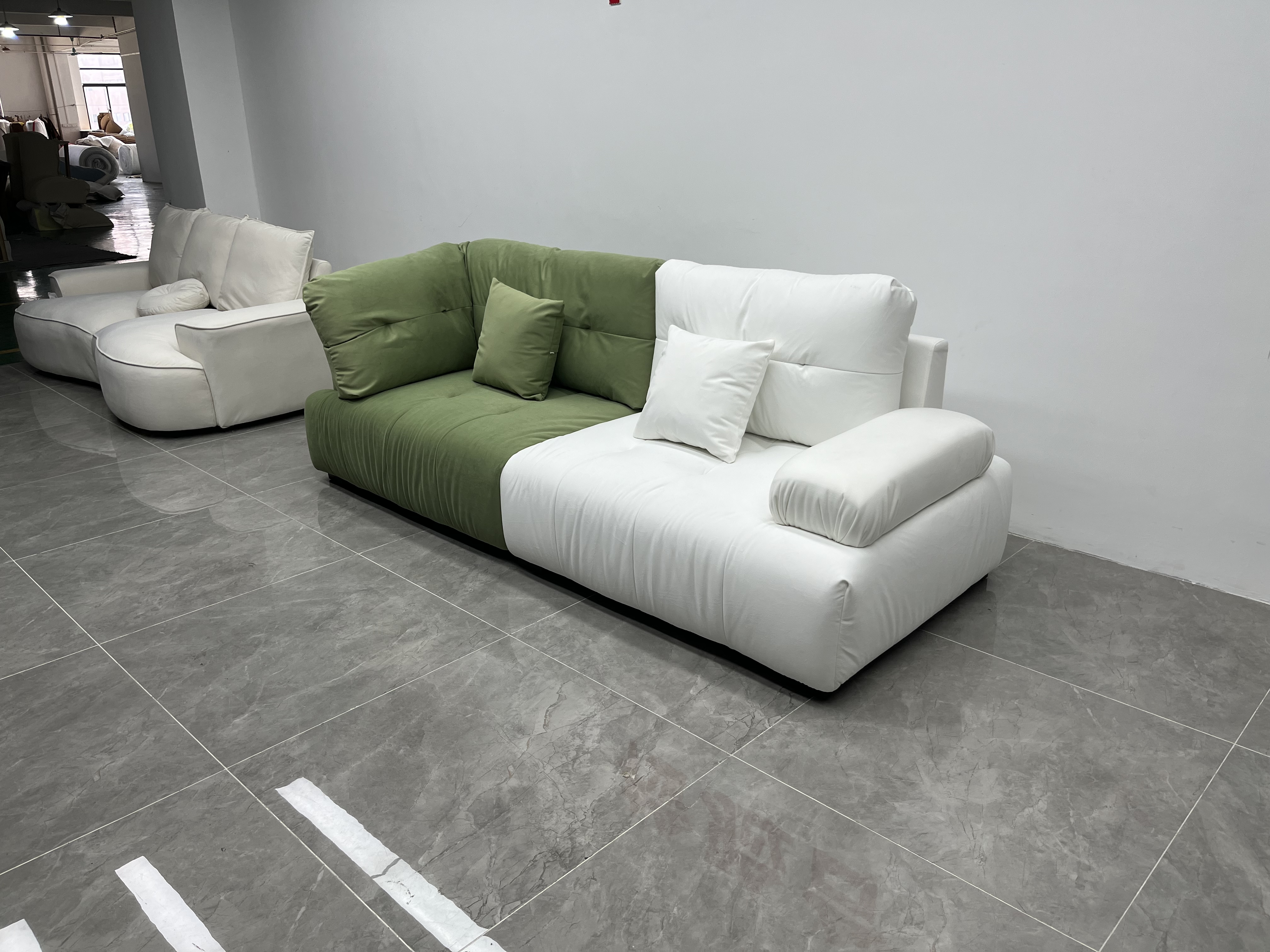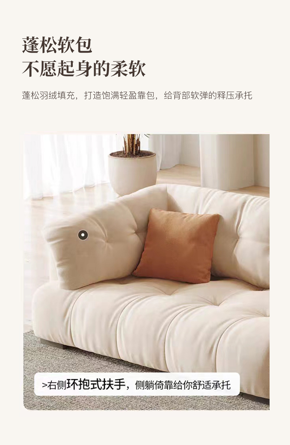 A系优选 奶油风 磨砂布+桉木+高密度回弹海绵+羽绒+公仔绵+黑色脚 四人位 网红云朵 2.8米沙发¥6058