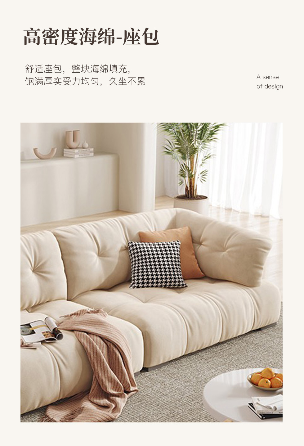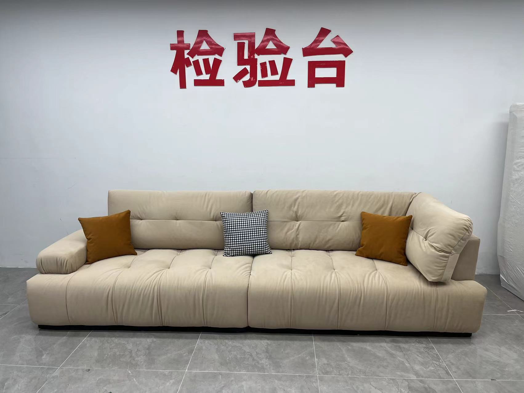 A系优选 奶油风 高密度海绵+全实木框架 科技布面料 抱枕羽绒 图片色 四人位 网红钢琴键 2.7米沙发¥6990