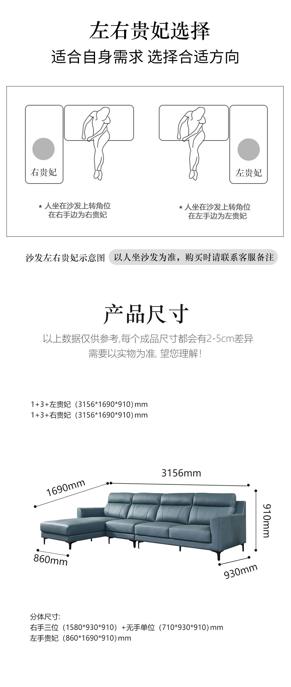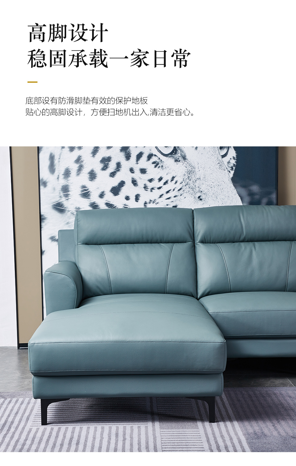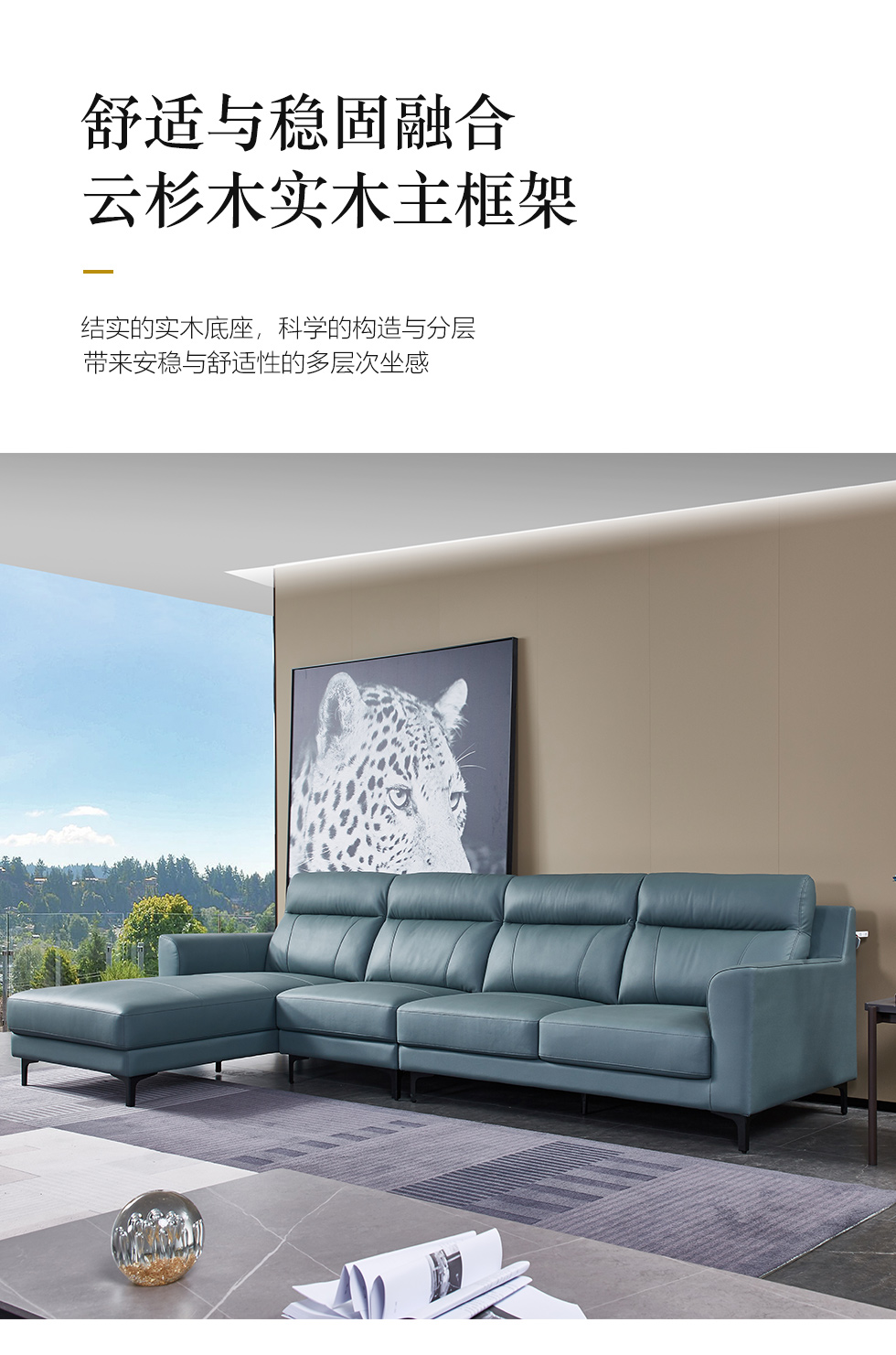 CBD家居 极简 接触面真皮+非接触面仿皮+东亚海绵+云杉木实木主框架 TE07天青色 1+3+右手贵妃 转角3.156米沙发