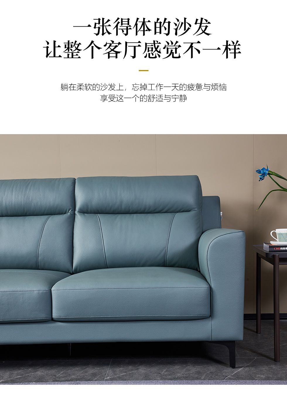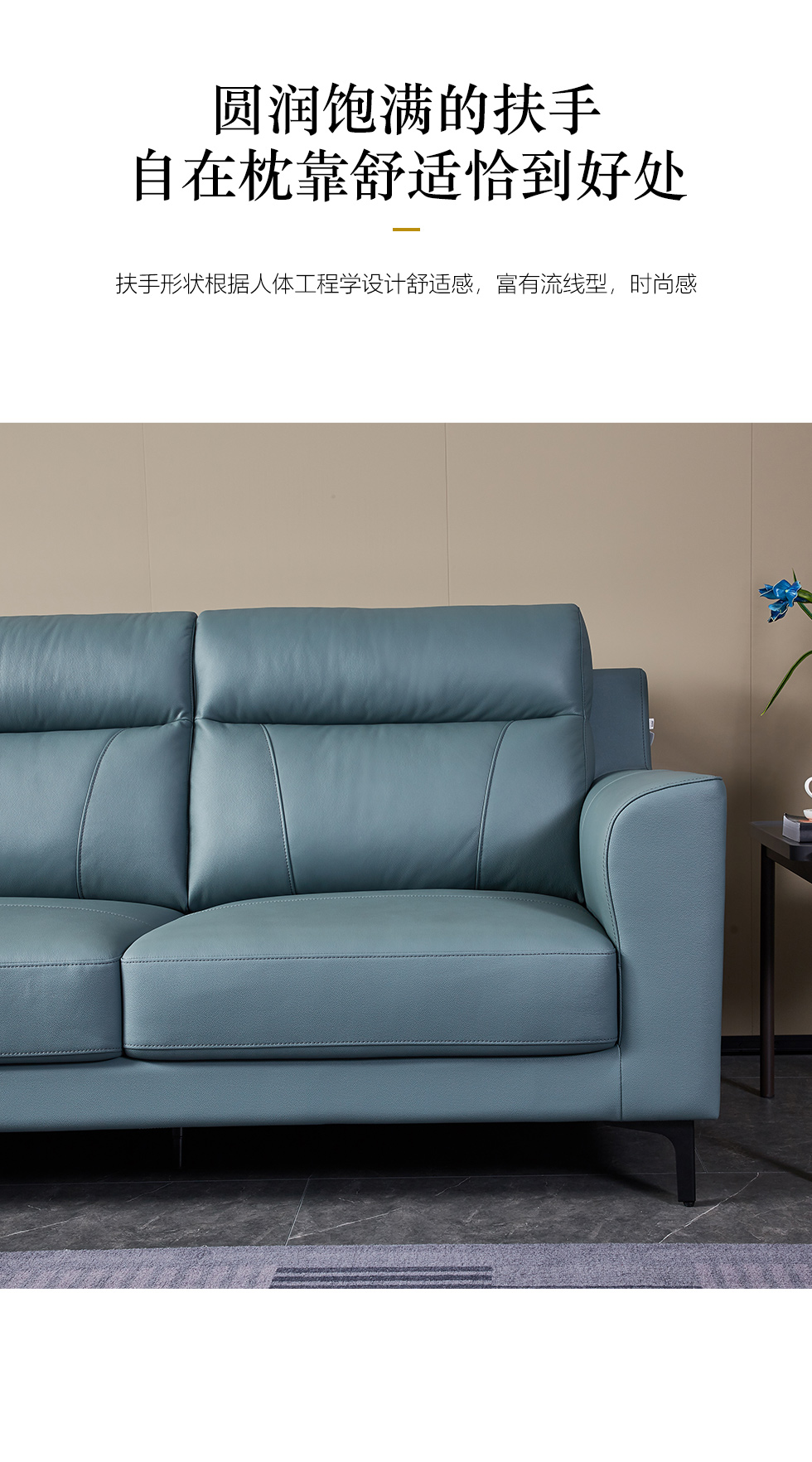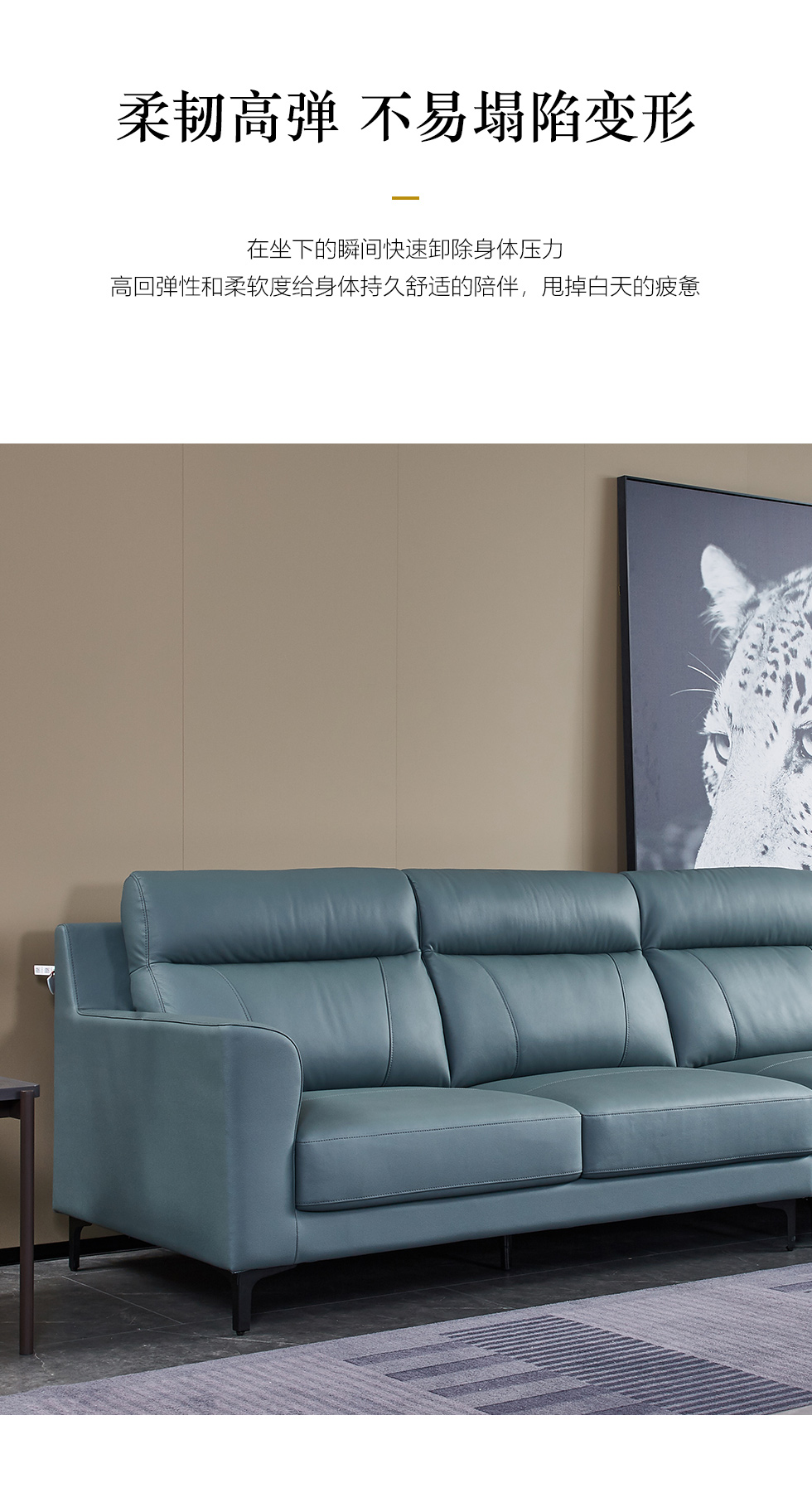 皇朝家居 现代极简 接触面轻压摔头层黄牛皮 +桉木足方+E1双面杨木夹板 Φ4.0拱簧+高回弹海绵+白鹅绒+公仔棉+五金脚 三人位 3.065米沙发¥11242