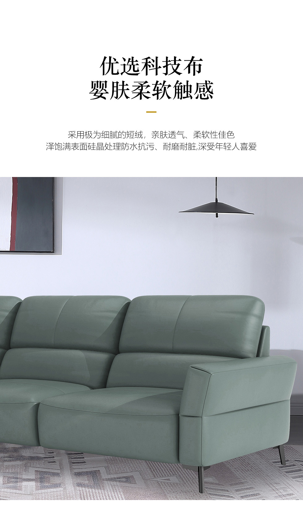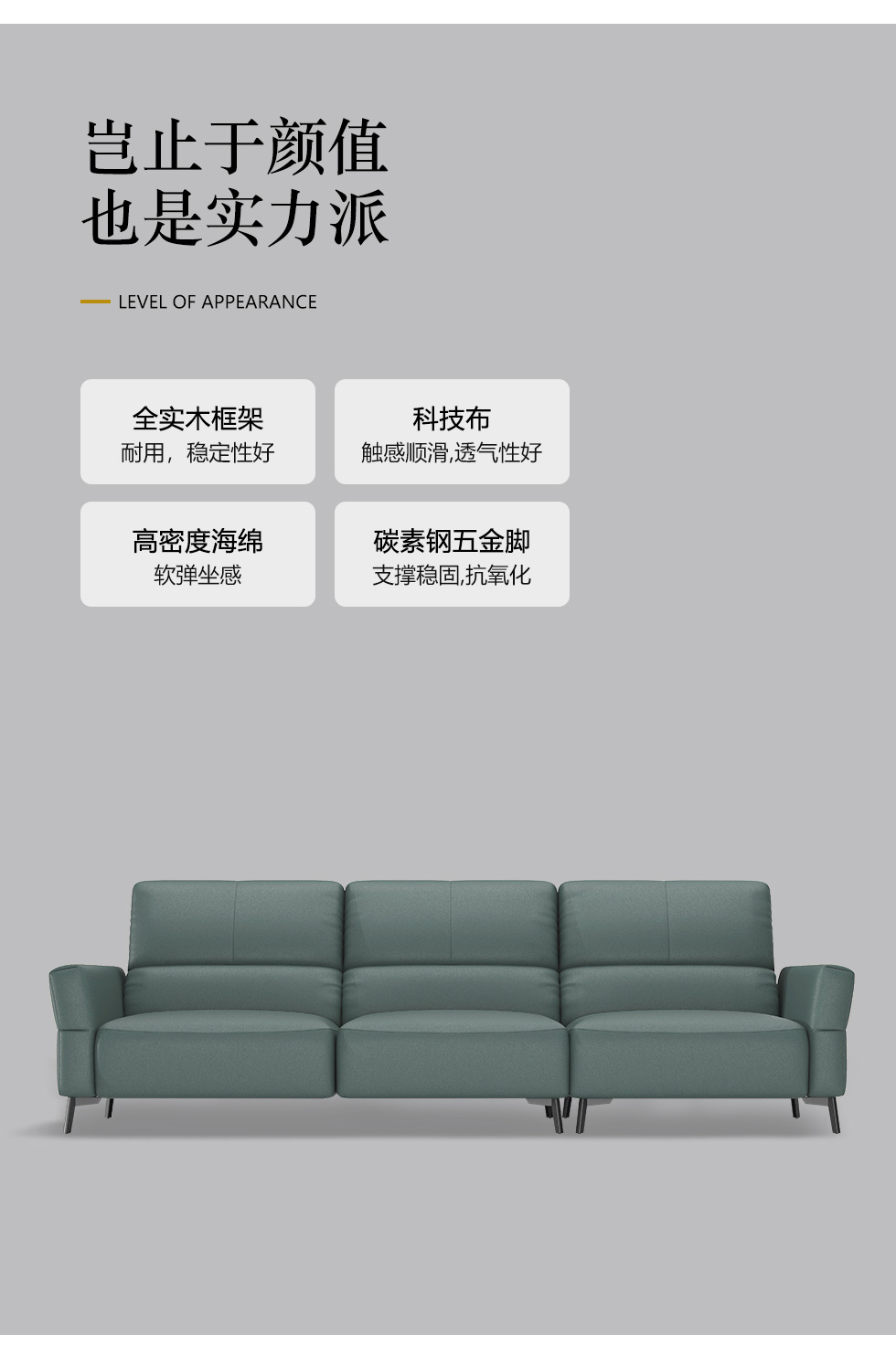 左右家居 现代简约 科技布+全实木框架+碳素钢五金脚 4A+4B(四人位)布艺2.7米沙发