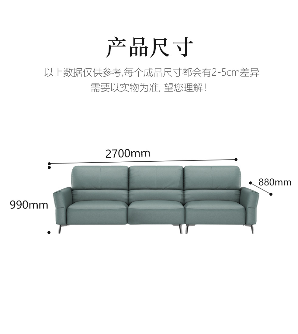左右家居 现代简约 接触面头层牛皮+仿真皮+全实木框架+碳素钢五金脚 4A电动+4B(四人位)功能2.63米沙发¥13620