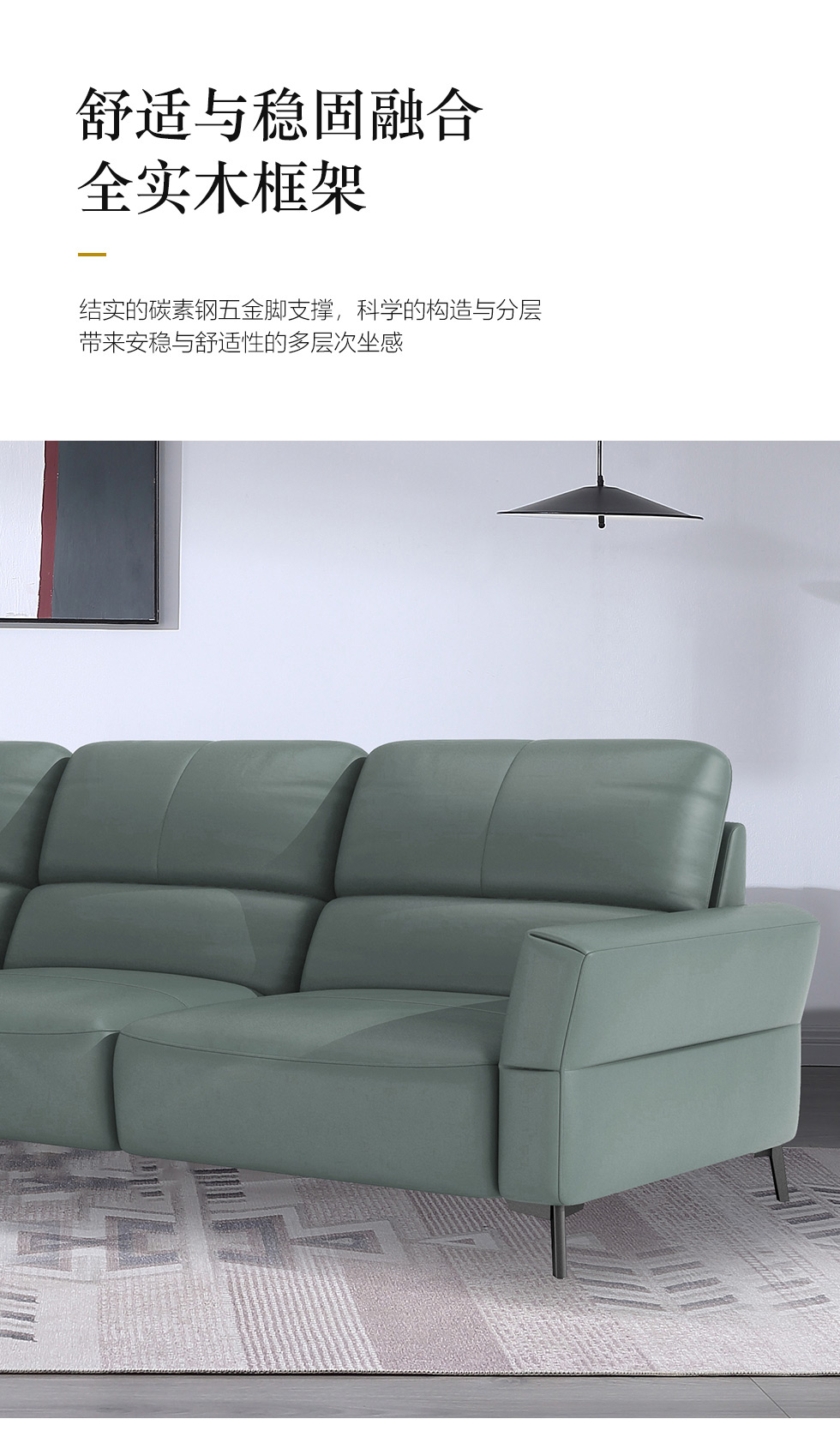左右家居 现代简约 接触面头层牛皮 进口落叶松实木框架+蛇形弹簧系统+水性胶 高密度海绵 3.3米沙发¥10800