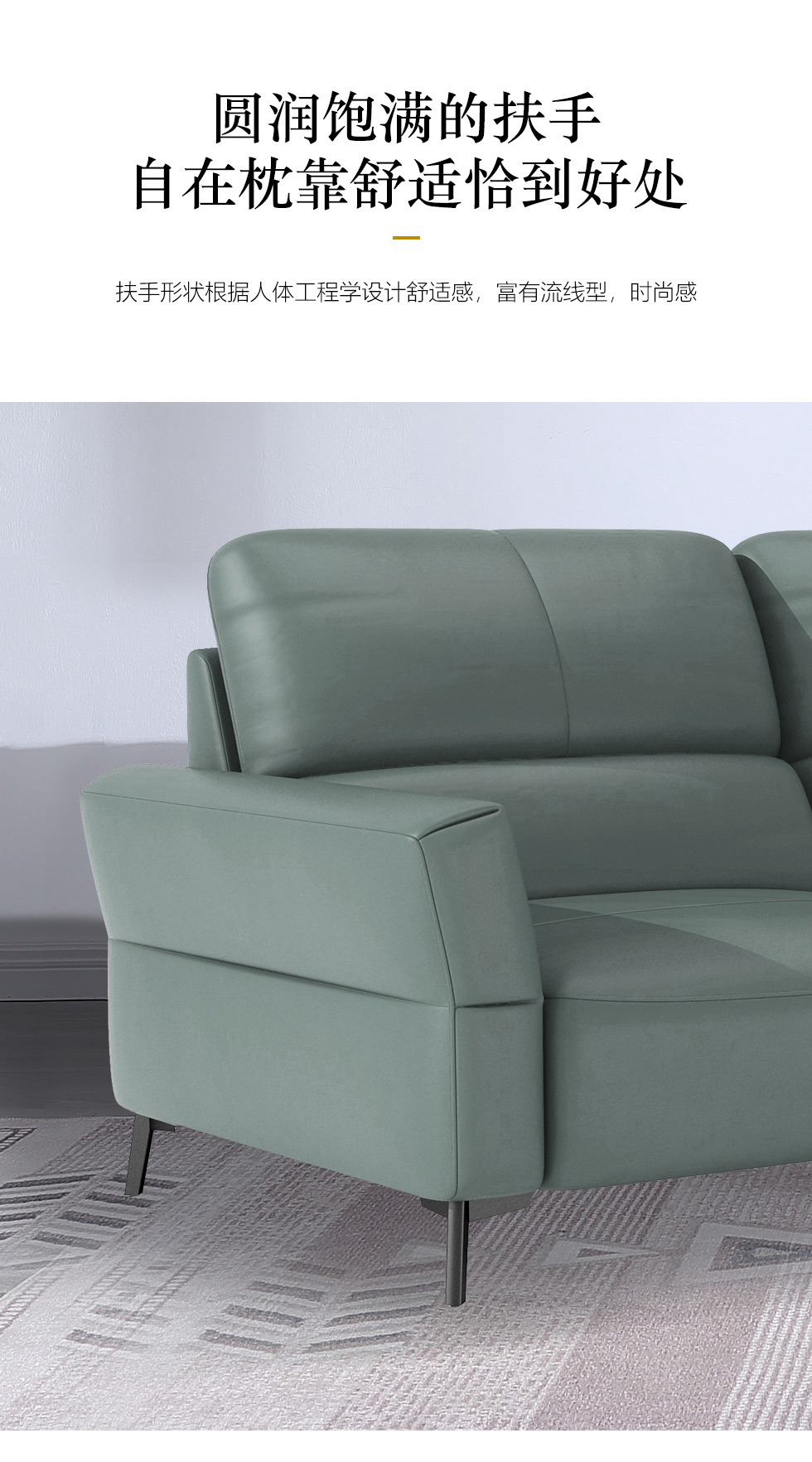 左右家居 现代简约 接触面头层牛皮+仿真皮+实木内架+多层实木板+高回弹海绵+碳素钢五金 四人位3米沙发