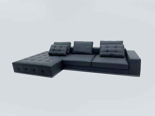 梵纳意简 极简 接触面头层牛皮+多层实木板+实木框架+高回弹海绵+不锈钢五金+羽绒 右转角沙发 Q361网红 极简钢琴键4.1米沙发